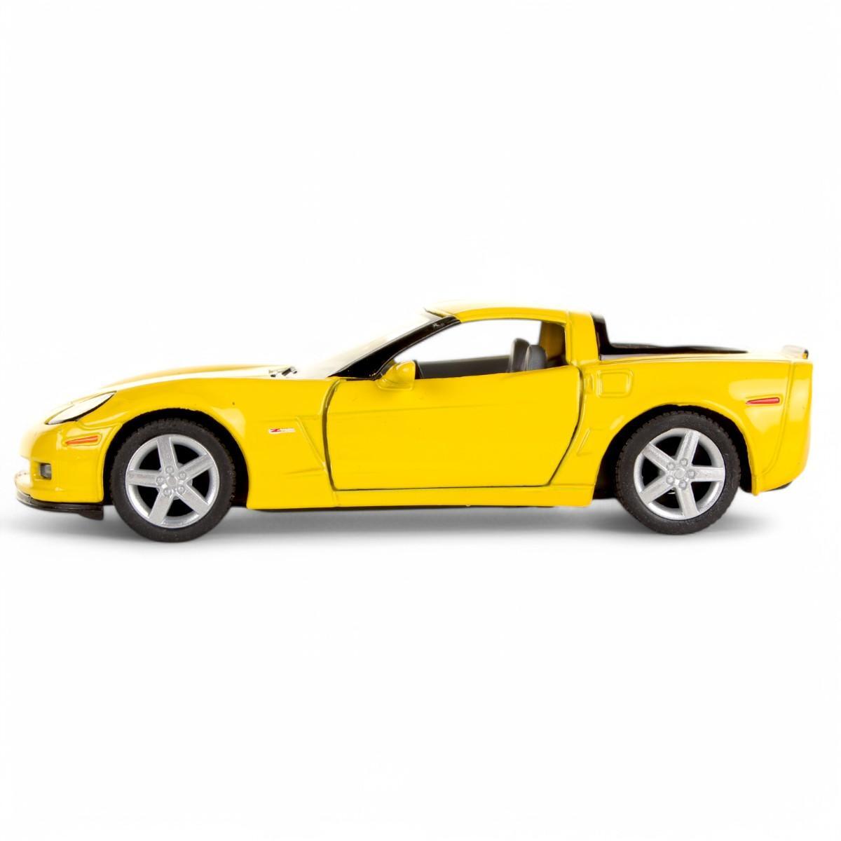 Инерционная машинка Chevrolet Corvette Z06 от бренда Kinsmart сочетает в себе детализацию коллекционных моделей и увлекательную функциональность для активных игр. Металлический корпус с пластиковыми элементами воспроизводит все линии легендарного спорткара, а ярко-жёлтый цвет привлекает внимание в любой коллекции.