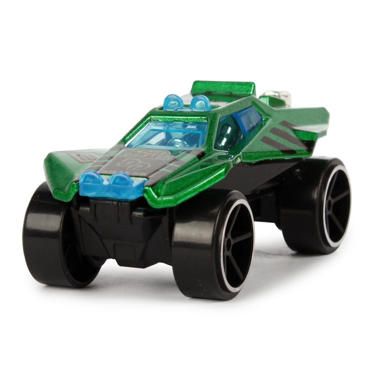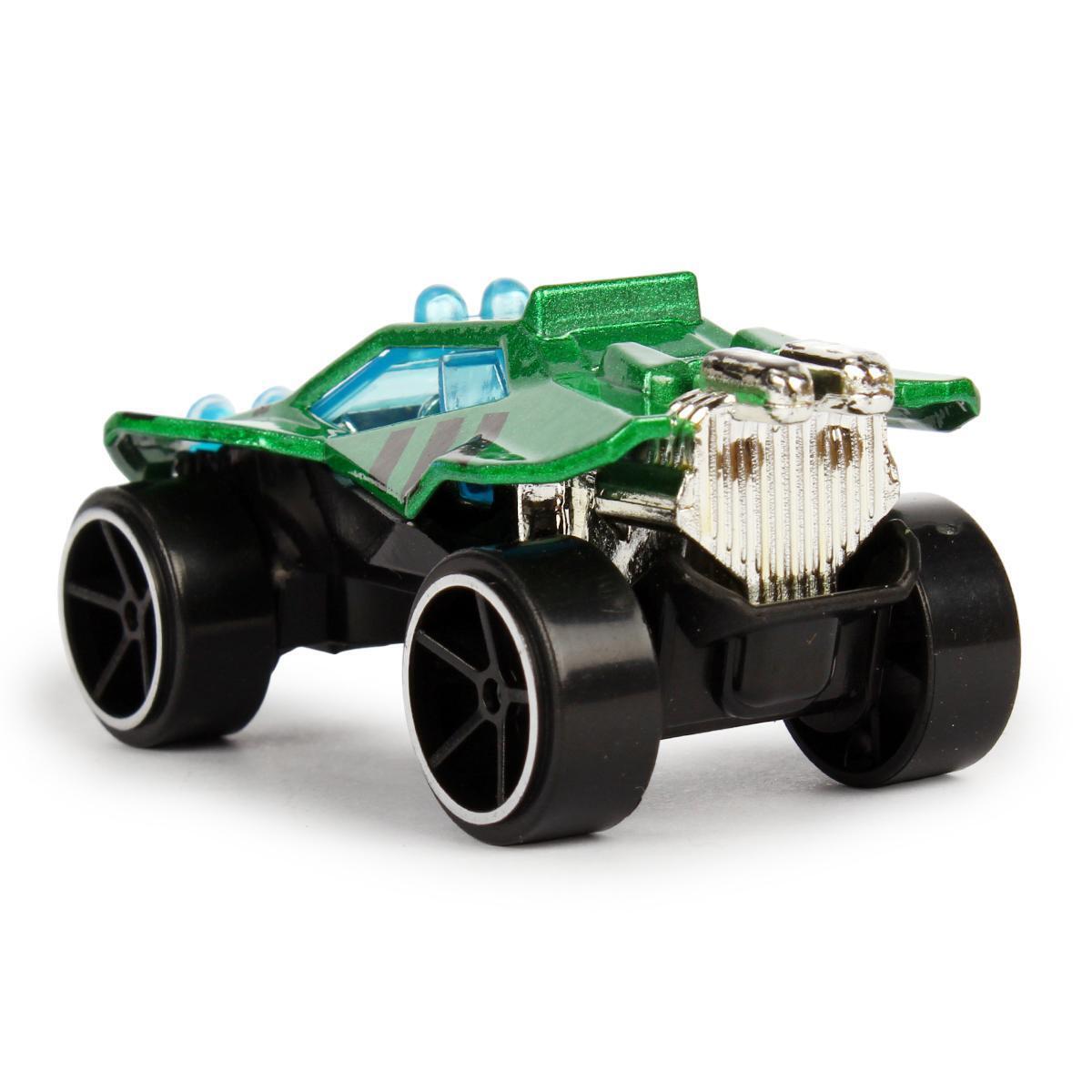 Преимуществами данной модели являются её реалистичный дизайн в стиле спортивных автомобилей, яркое окрашивание в зеленый цвет с черными полосами, прочные колеса с глубоким протектором и металлическое основание, гарантирующее долговечность. Размер 7,5 см идеально подходит для ручек детей, позволяя удобно управлять машинкой и создавать динамичные игровые сценарии.