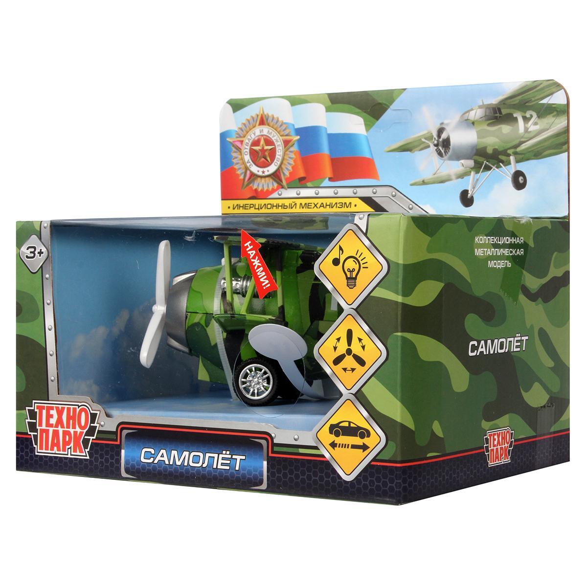 Размеры: длина 11,5 см; материалы: металл и пластик; цвет: зеленый с камуфляжным узором; части и функции: вращающийся пропеллер, световые и звуковые эффекты, инерционный механизм, колеса.