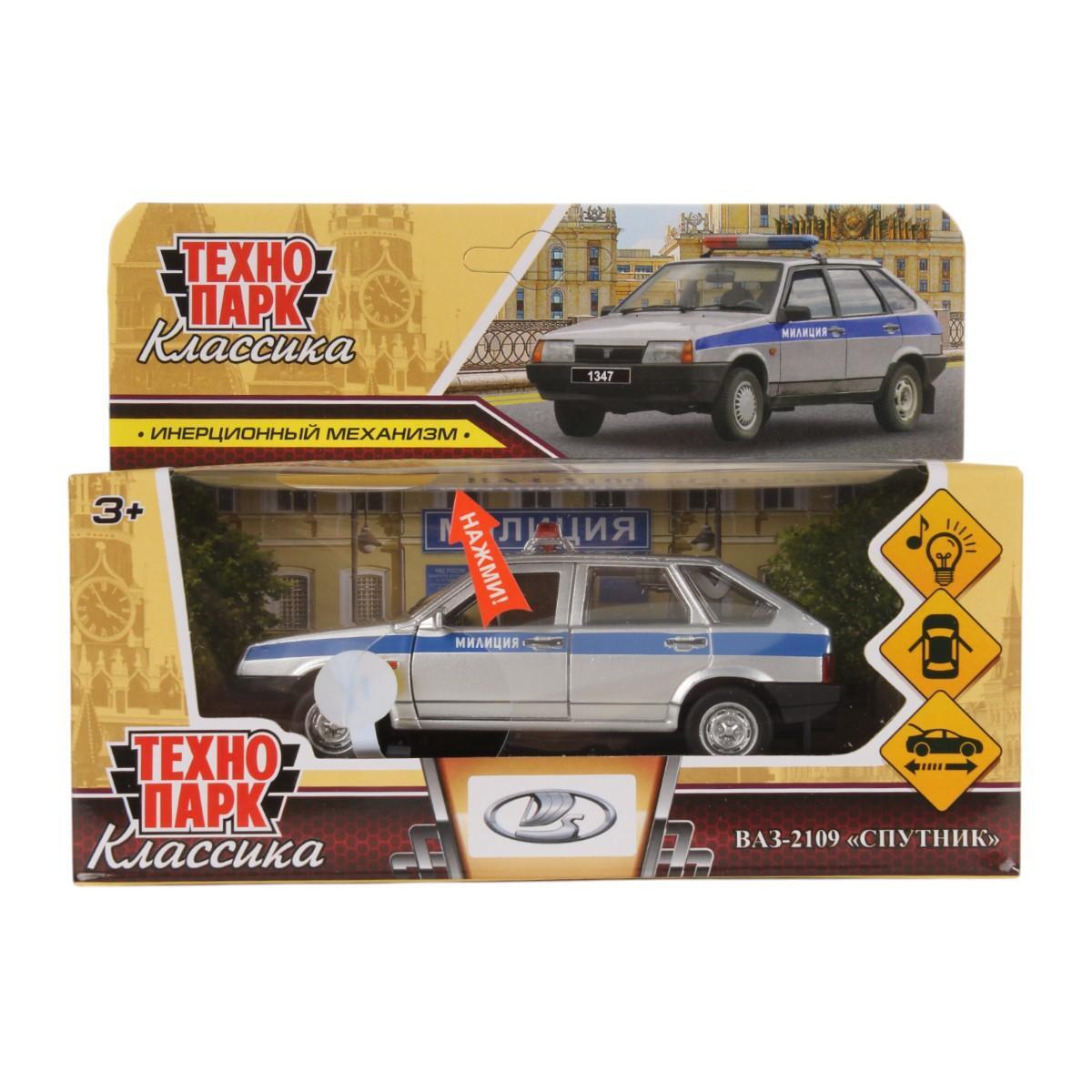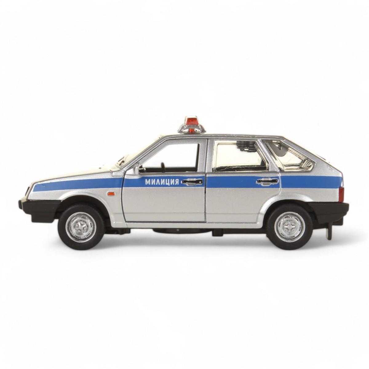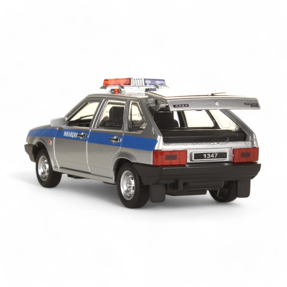 Модель автомобиля «ВАЗ-2109 Спутник. Милиция» 12 см, инерционный механизм, свет-звук, открывающиеся двери, серебристый