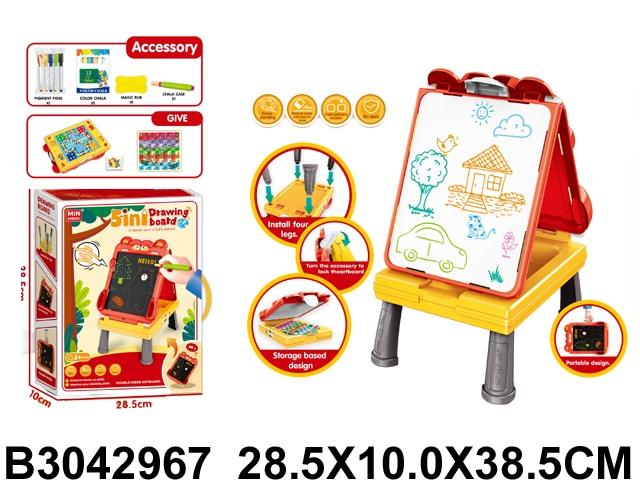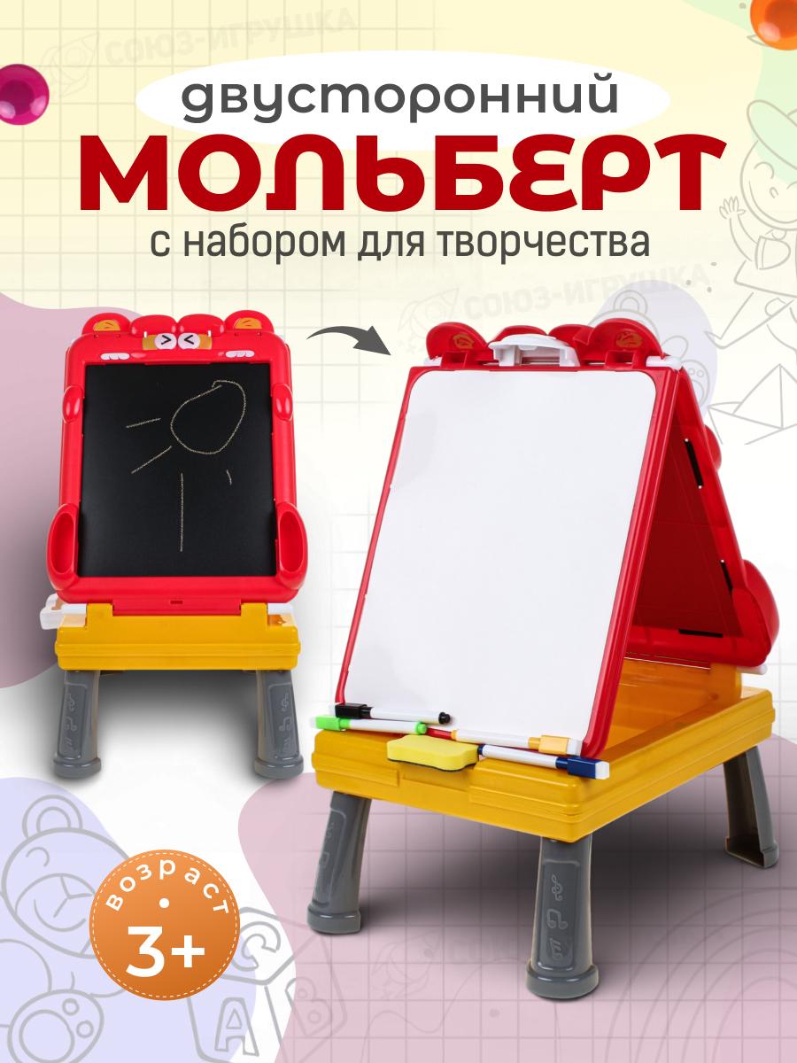 Двусторонний мольберт 3в1: магнитная доска, меловая поверхность и отсек для хранения в одном компактном наборе