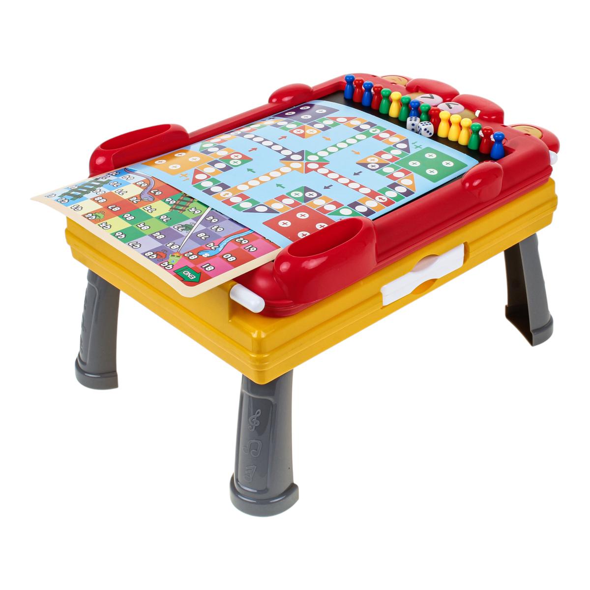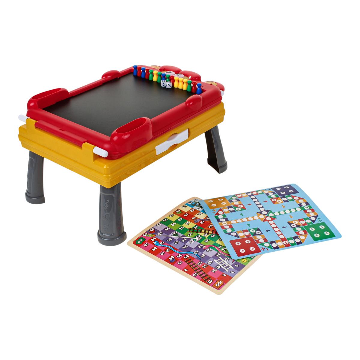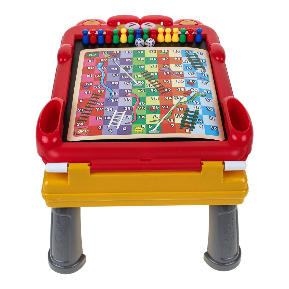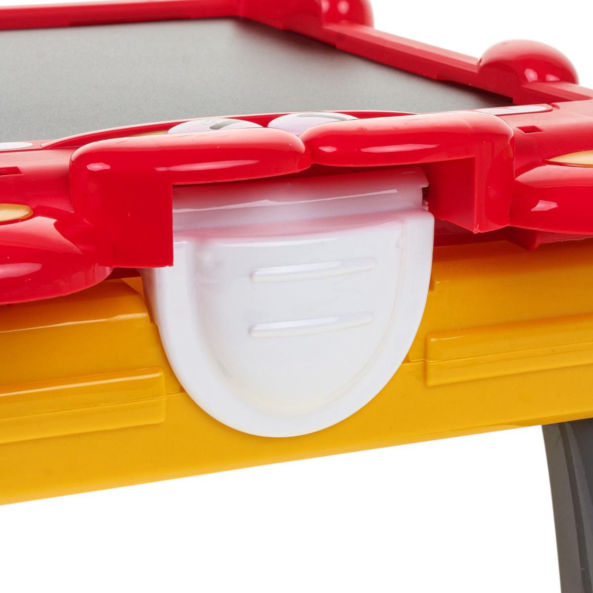 - Встроенный пенал — фломастеры, мелки и губка всегда под рукой, ничего не теряется.