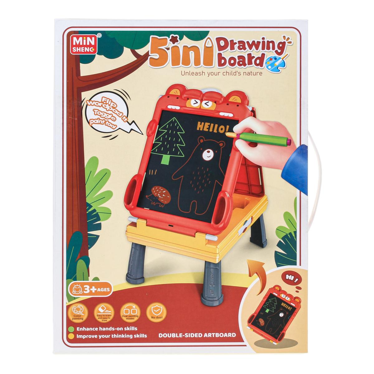 Мольберт «3in1 Drawing board» превращает обучение в увлекательную игру. Одна сторона — магнитно-маркерная для рисования фломастерами на водной основе и игры с магнитами, вторая — классическая меловая. Ребёнок учится считать, писать и творить без бумаги и грязи.