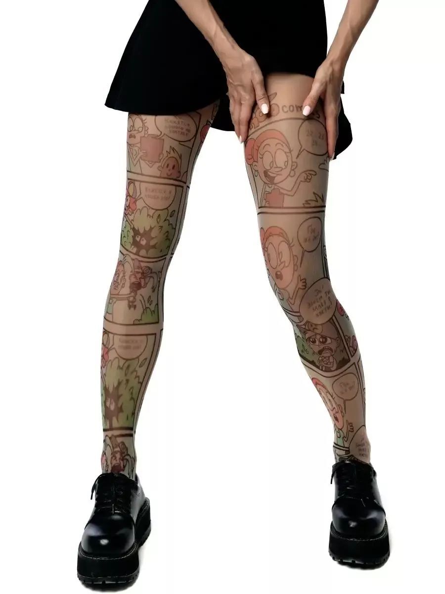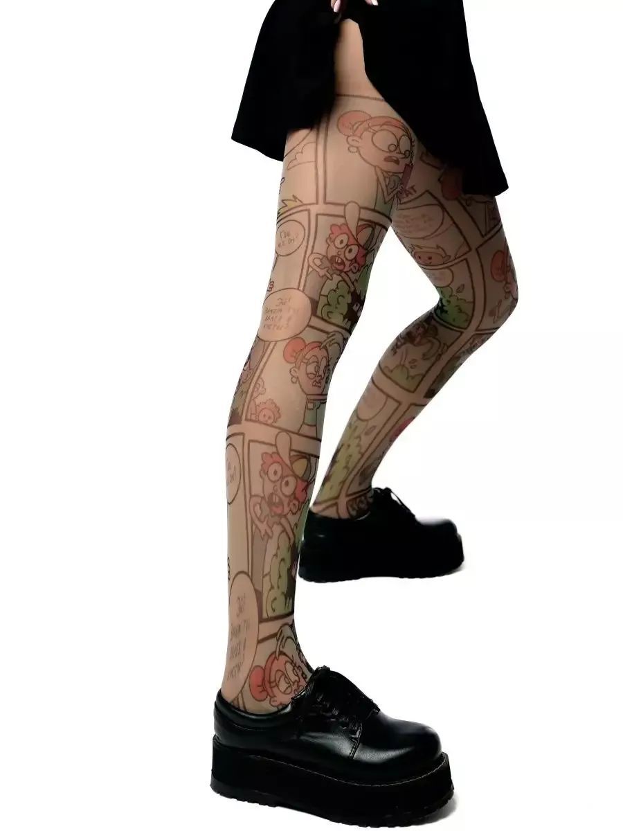Яркие молодежные колготки с комиксами для стильных образов