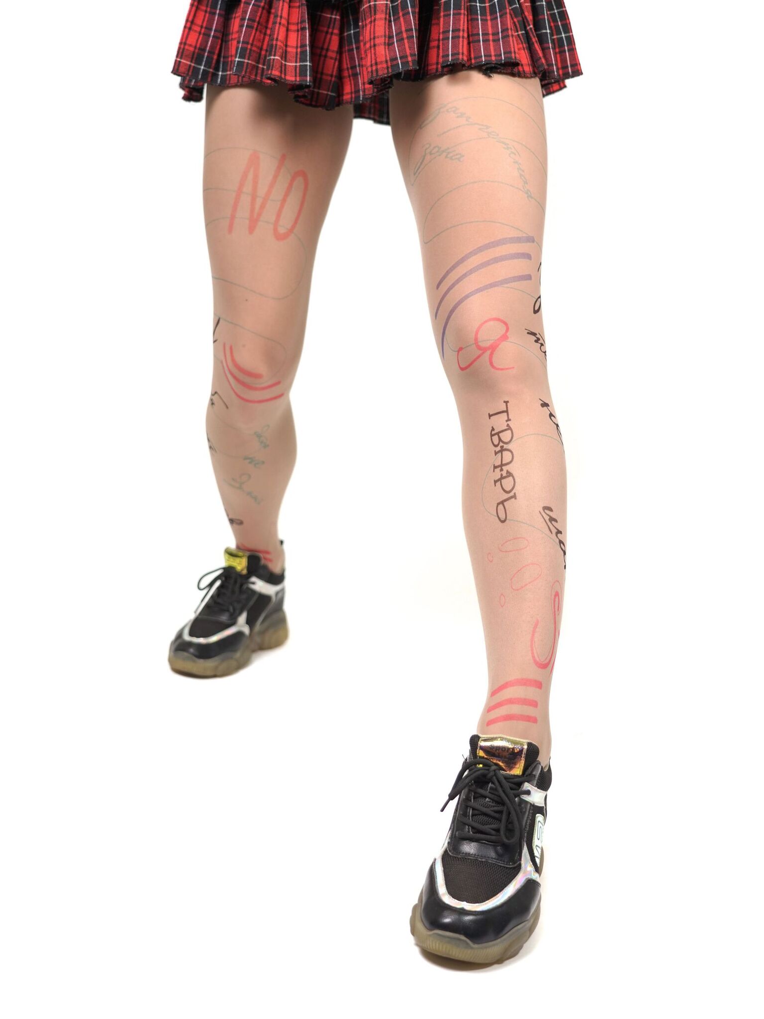 Хочешь выделиться из толпы и заявить о себе? Колготки с яркими надписями и графическими элементами станут идеальным выбором для создания запоминающегося образа.