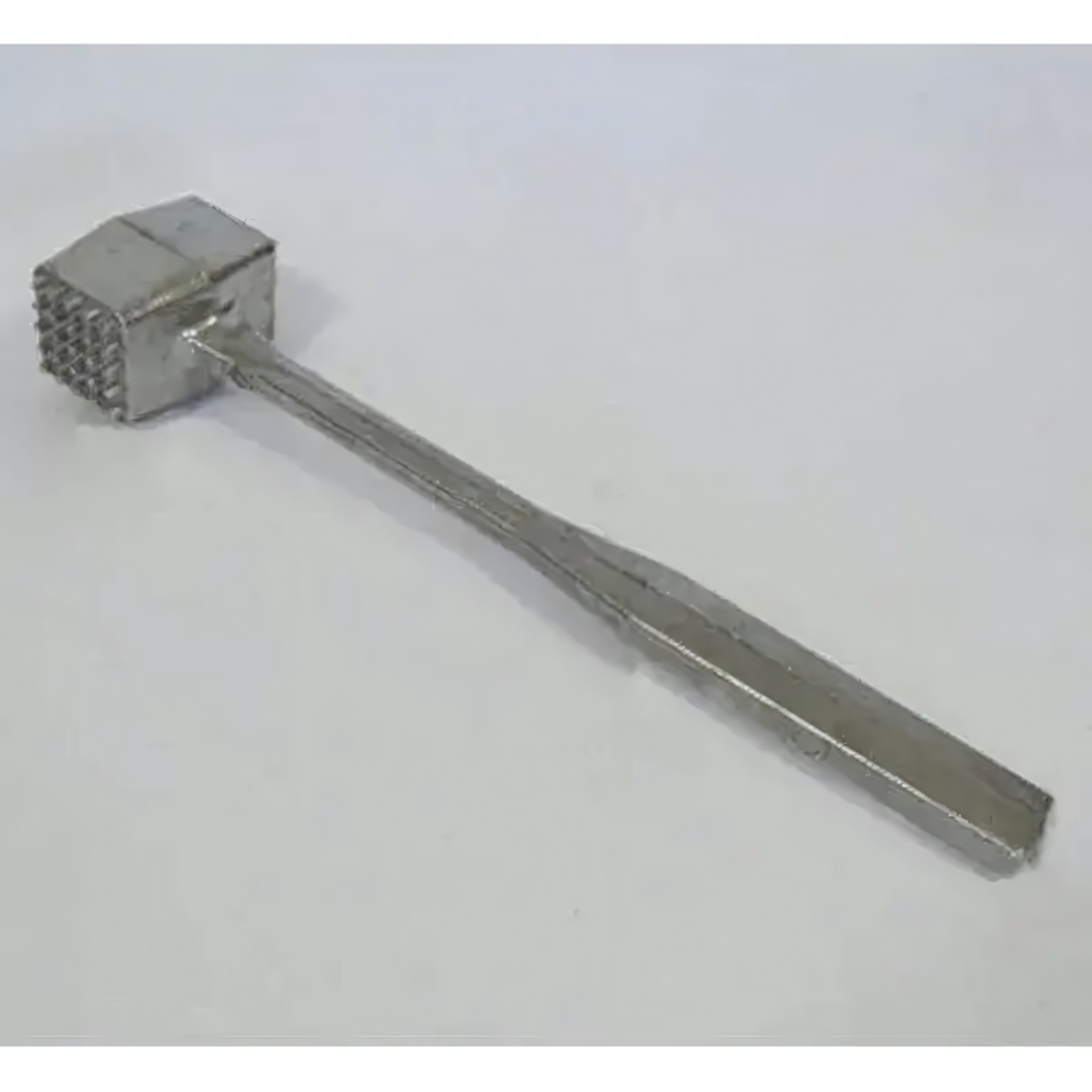 Материал: металл, серебристый цвет. Вес: 225 г. Головка: кубическая форма с решёткой для эффективного размягчения. Ручка — прямая и расширяющаяся к головке для безопасного и удобного хвата. Подходит для ежедневного использования на любой кухне.
