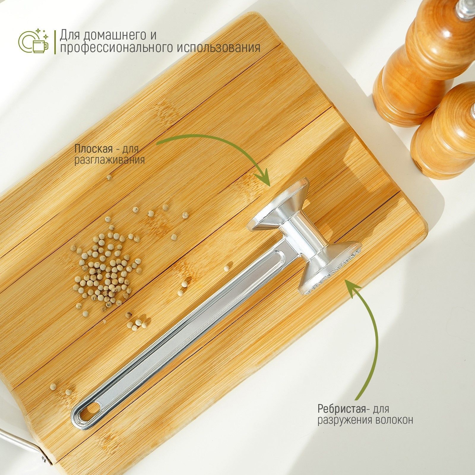 Благодаря продуманной конструкции, молоток равномерно распределяет усилие, не повреждая структуру мяса. Прочный металлический корпус выдерживает интенсивное использование как дома, так и в профессиональной кухне.