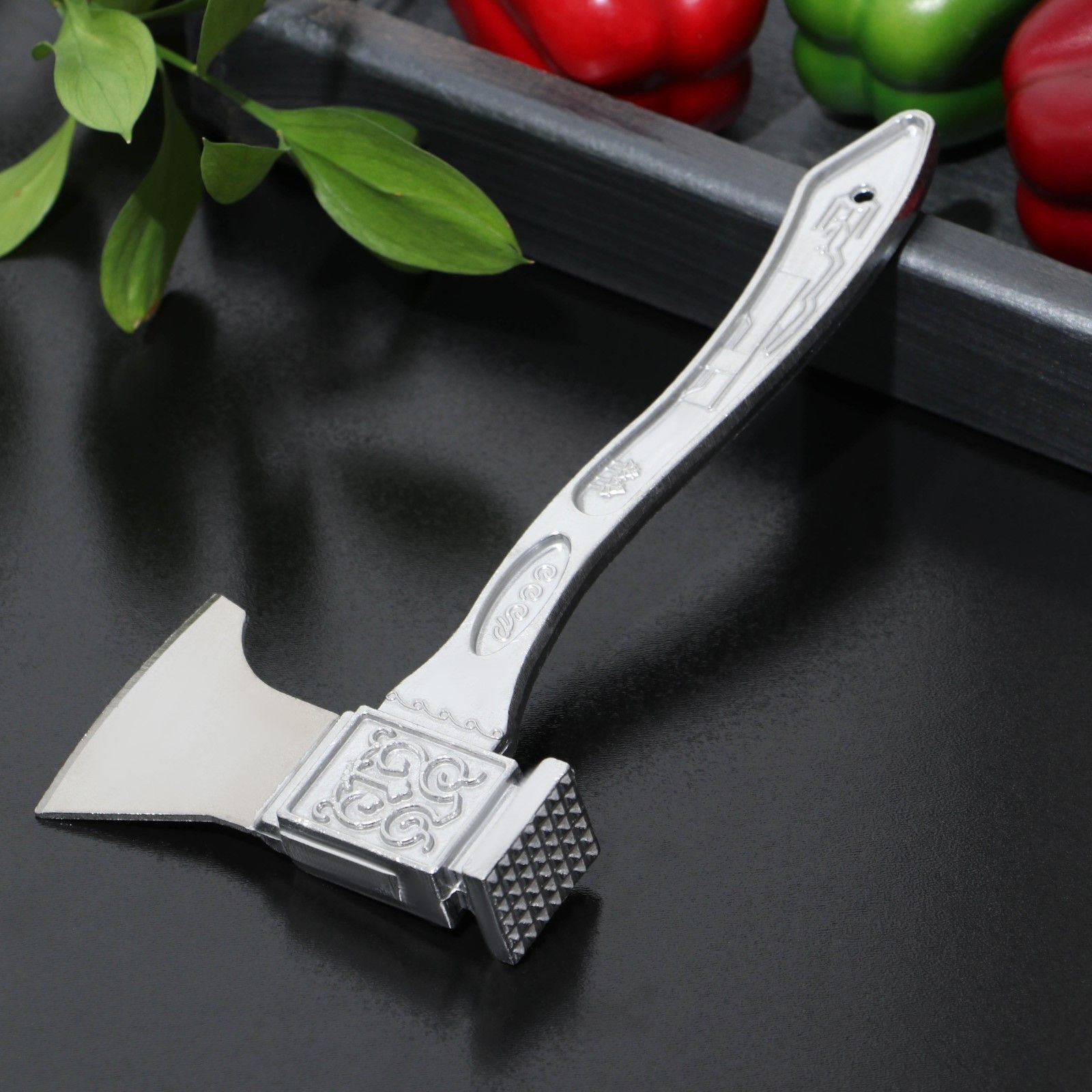 Представляем молоток для мяса 'Доляна' с топориком — идеальный помощник для приготовления нежных отбивных и стейков. Этот кухонный инструмент сочетает в себе функциональность и стильный дизайн.