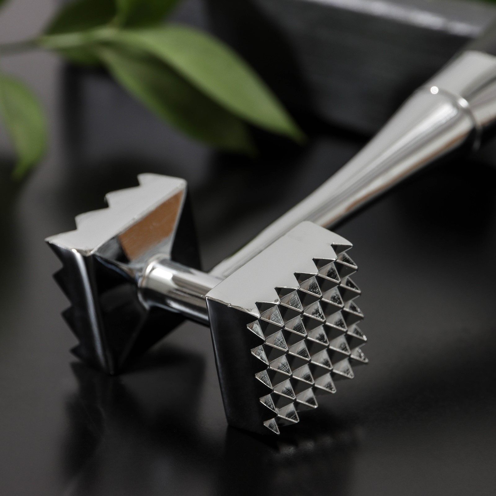 Двусторонняя рабочая поверхность позволяет экспериментировать с различными техниками обработки мяса. Отверстие в рукоятке упрощает хранение. Компактные размеры делают его удобным для любого кухонного пространства.