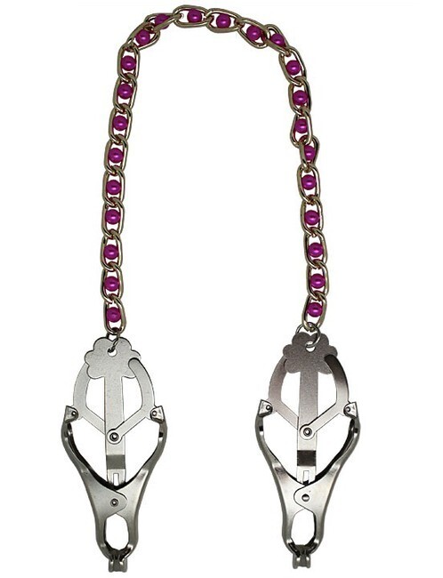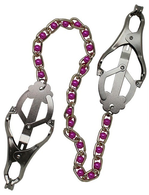 Зажимы для груди с цепочкой и розовыми бусинами, металл/пластик, 47 см, регулируемая сила
