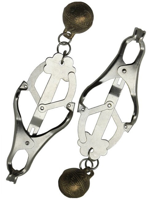Металлические зажимы со звенящим бубенчиком – это идеальный аксессуар для тех, кто ценит яркие ощущения и элегантный дизайн. Комбинация серебряного и бронзового цветов создает роскошный внешний вид.