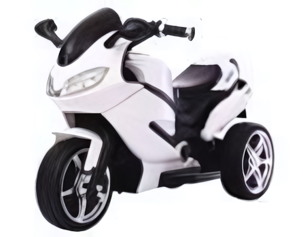 Размеры в собранном виде: 95х45х58 см. Электромотоцикл работает от аккумулятора 6V4.5AH*1, который легко заряжается. Стильный дизайн в белом цвете с черными элементами привлекает внимание и радует глаз.