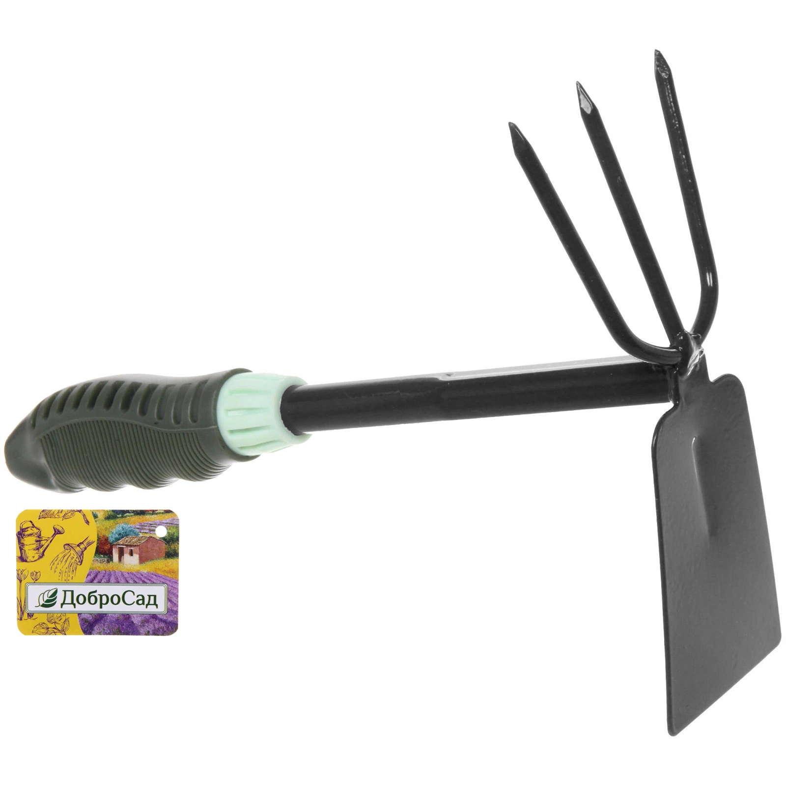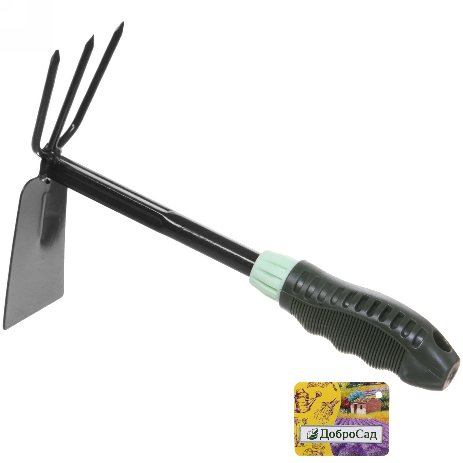 Мотыжка комбинированная «Эвкалипт», рыхлитель и бороздовик, металл/пластик, черно-зеленая ручка