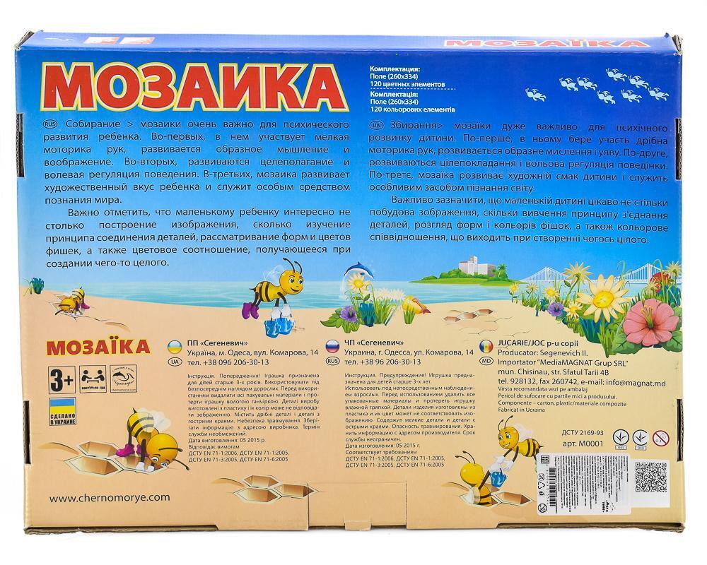 Изготовленная из качественного пластика, мозаика прослужит долгие годы. Размер игрового поля 260х334 мм оптимально подходит для детских рук. Подходит для детей от 3-х лет.