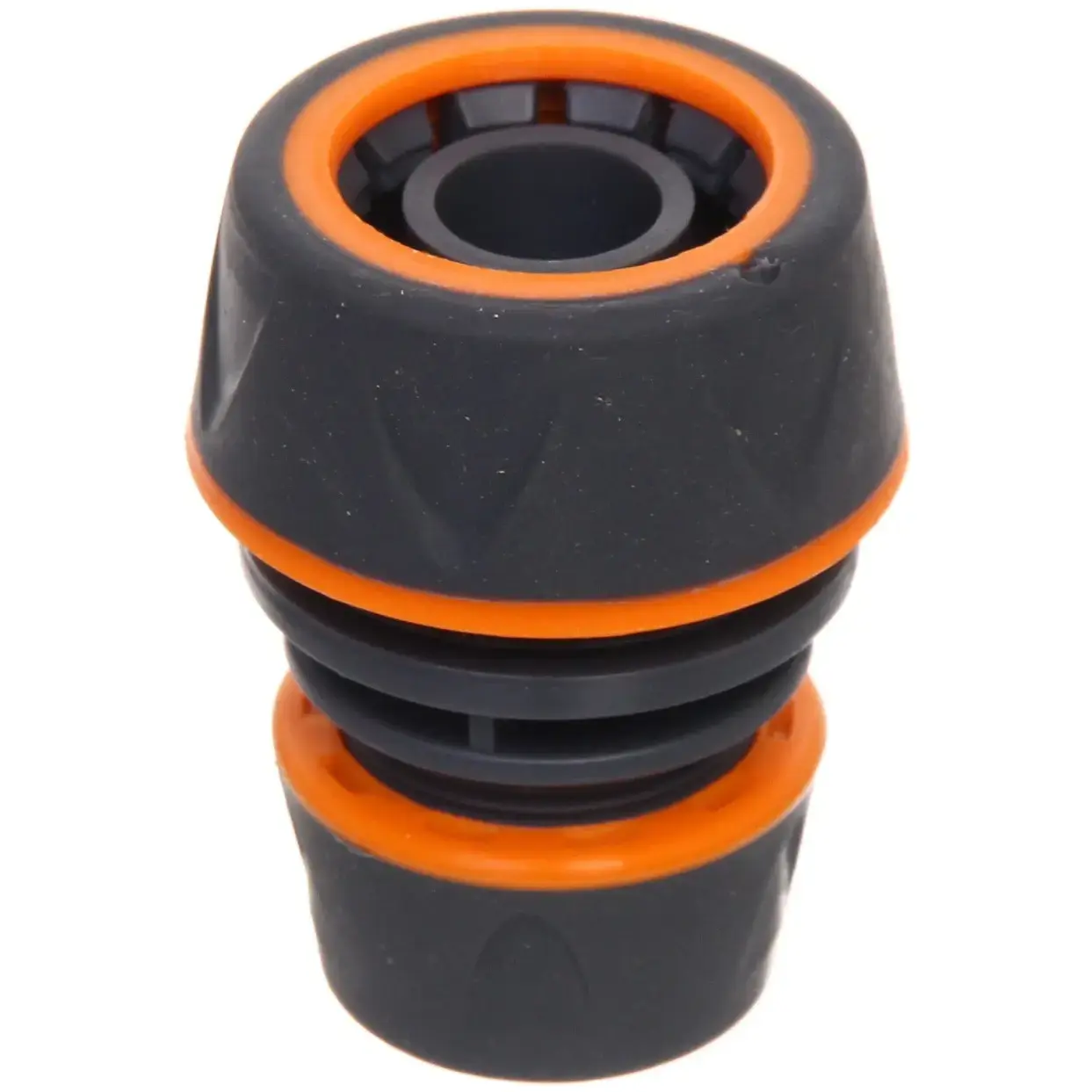 Муфта имеет округлую форму с рифленой текстурой, что обеспечивает удобный захват при установке. Оранжевые кольцевые детали на разных уровнях помогают улучшить герметичность соединения. Не упустите возможность сделать ваш сад более функциональным с помощью этой надежной муфты!