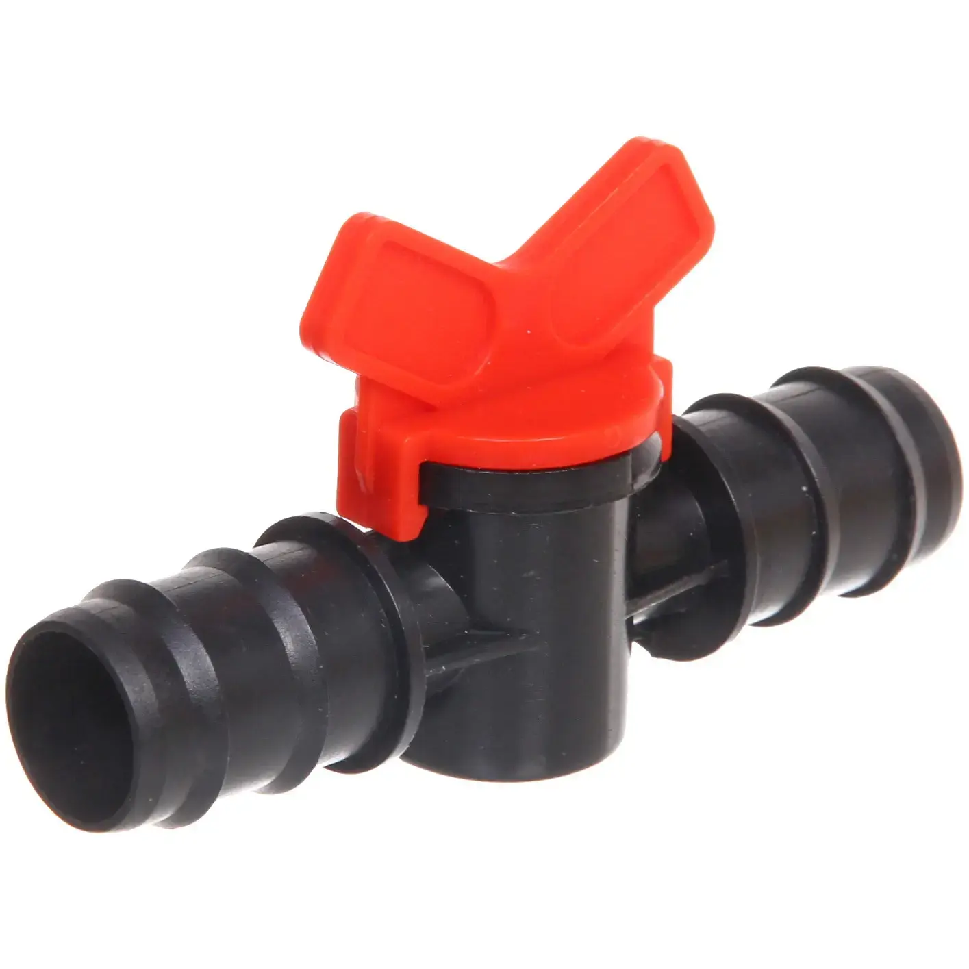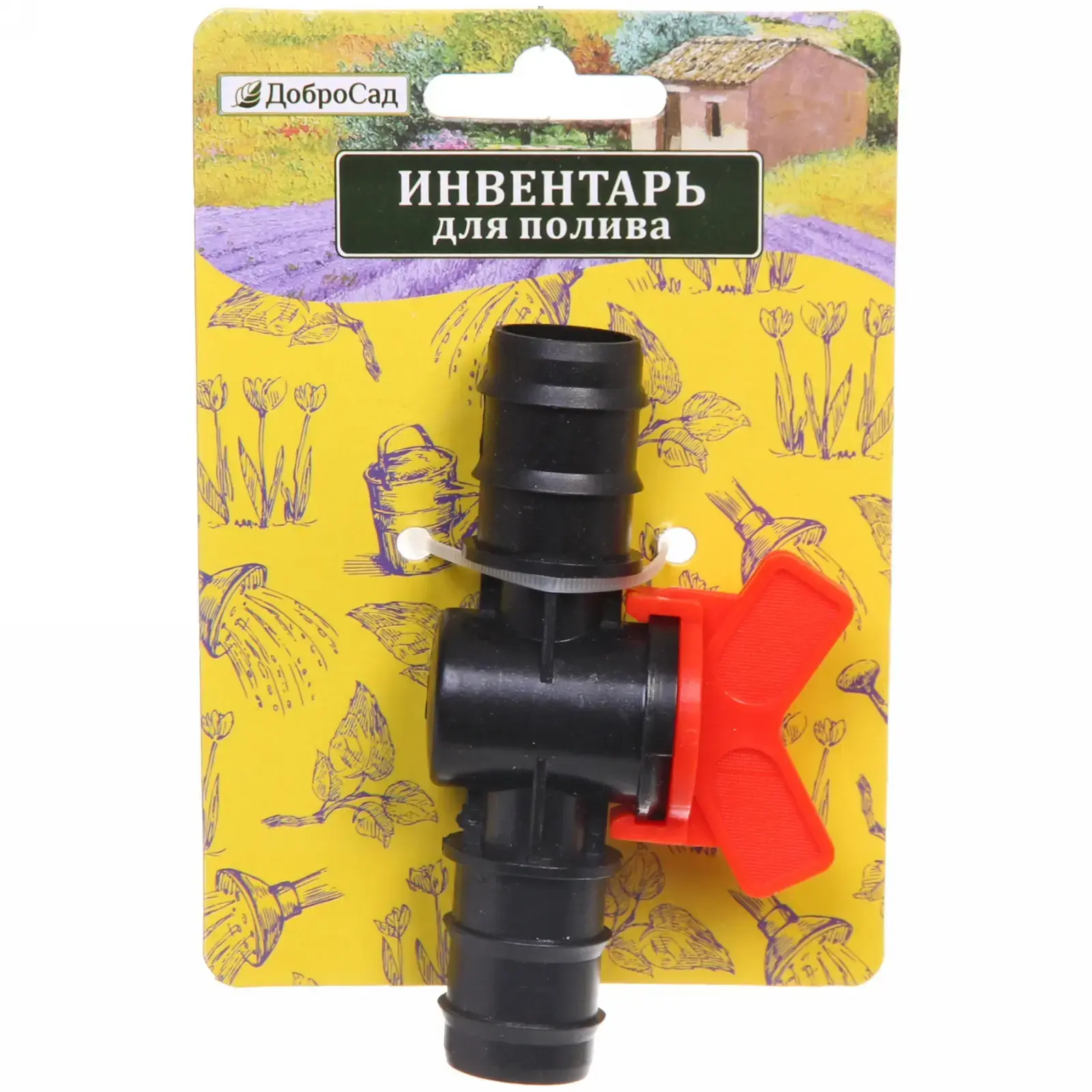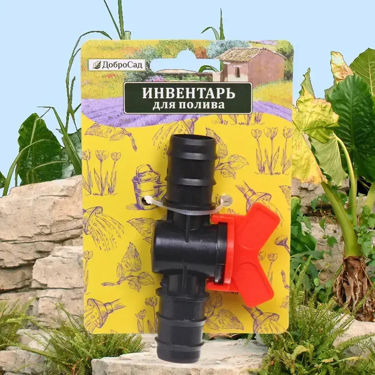 Муфта выполнена из прочного пластика черного цвета с красной ручкой для удобства управления. Она имеет стандартные размеры, что позволяет легко интегрировать ее в существующие системы полива. Не упустите возможность сделать ваш сад более ухоженным и удобным с помощью этой надежной муфты соединительной с краном!