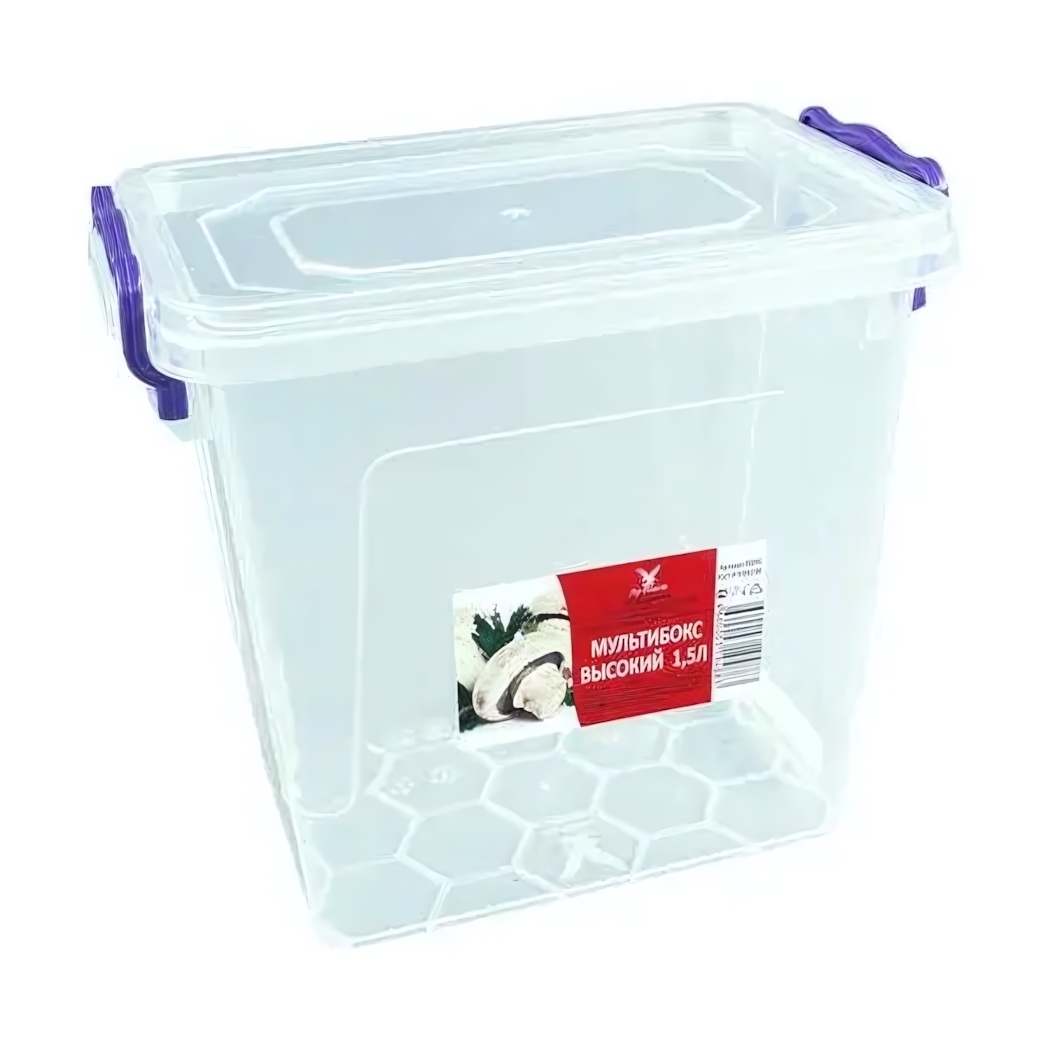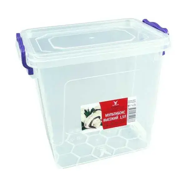 Контейнер для хранения герметичный 1,5л, прозрачный пластик, с фиксаторами крышки