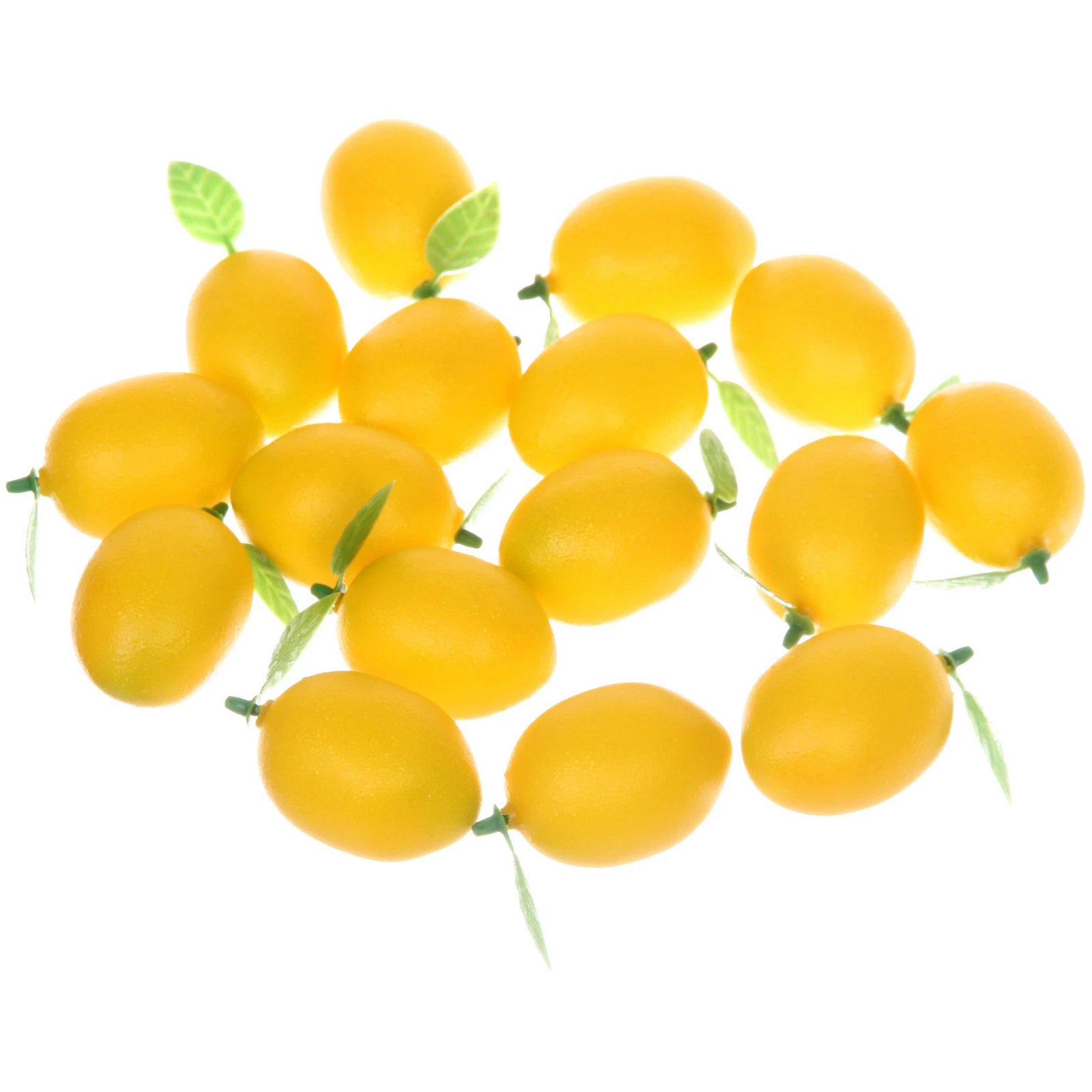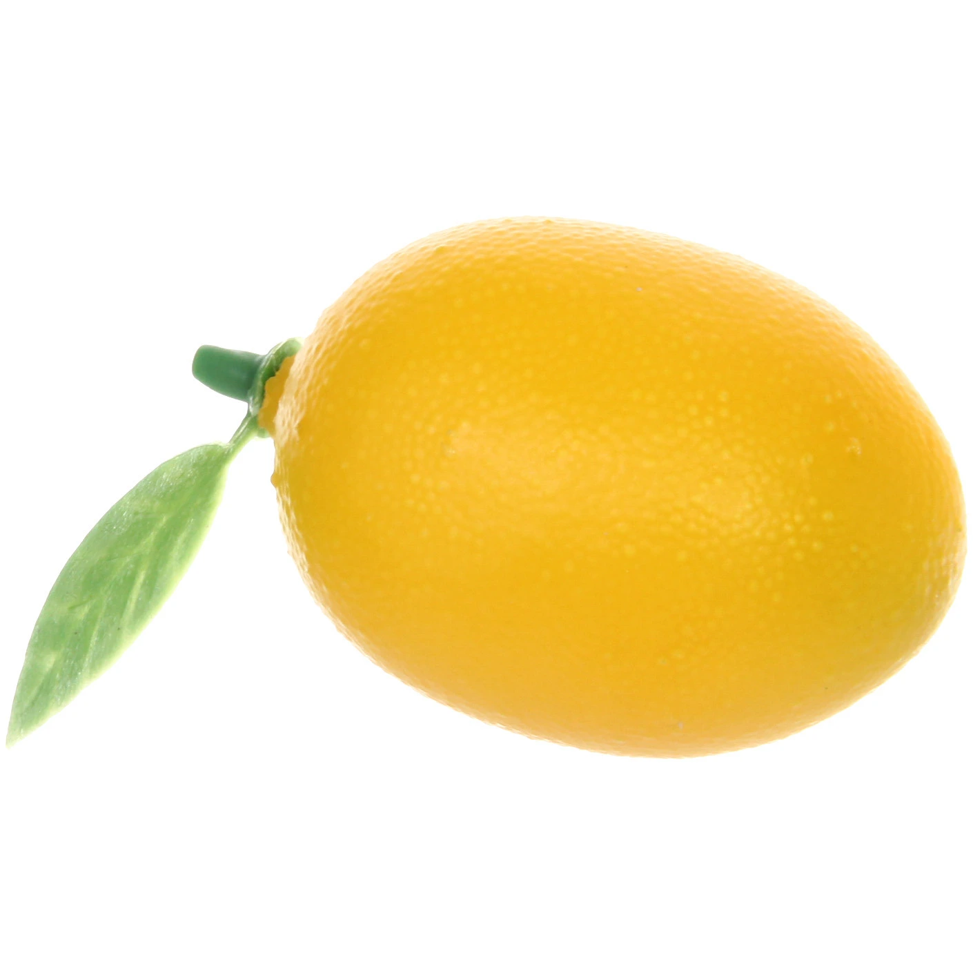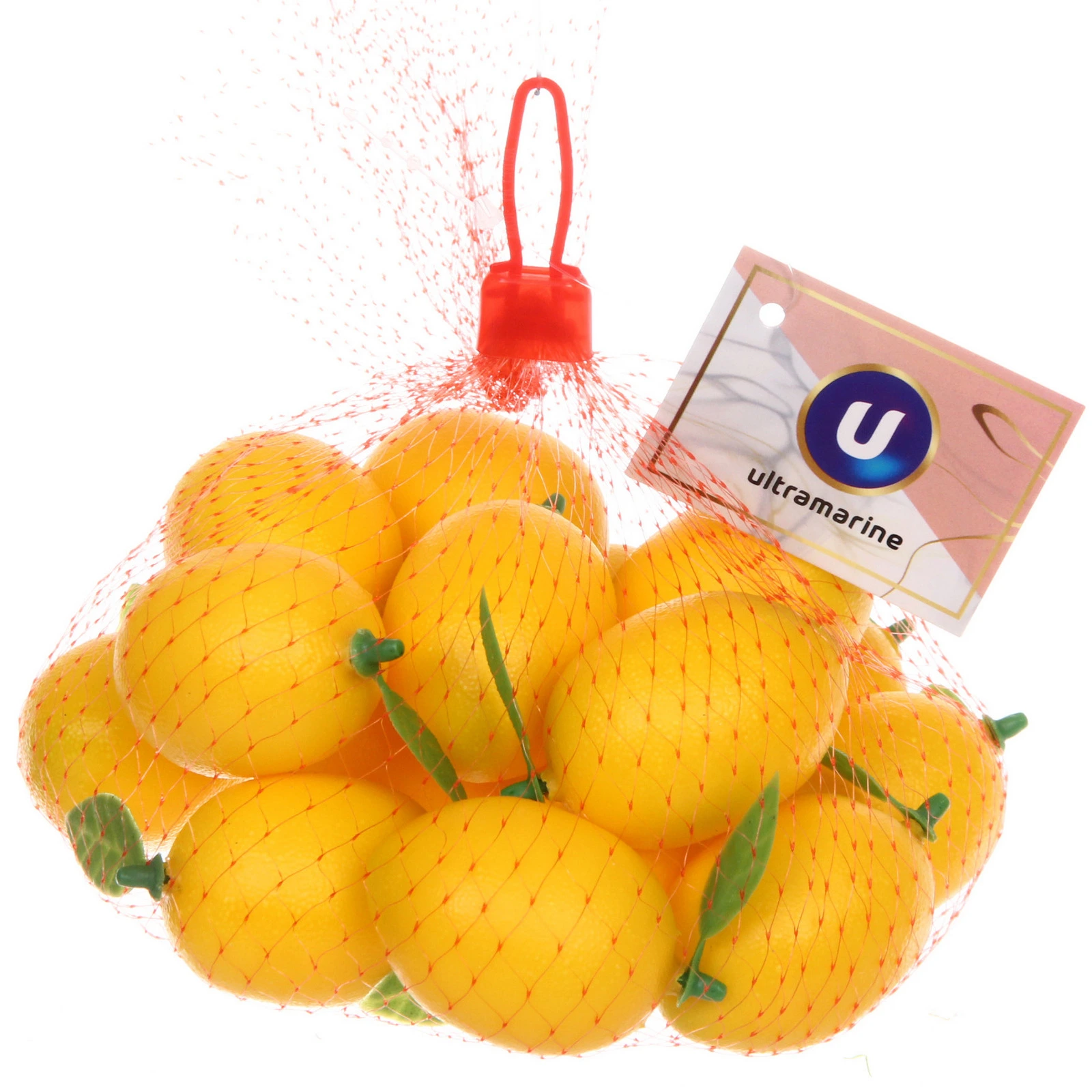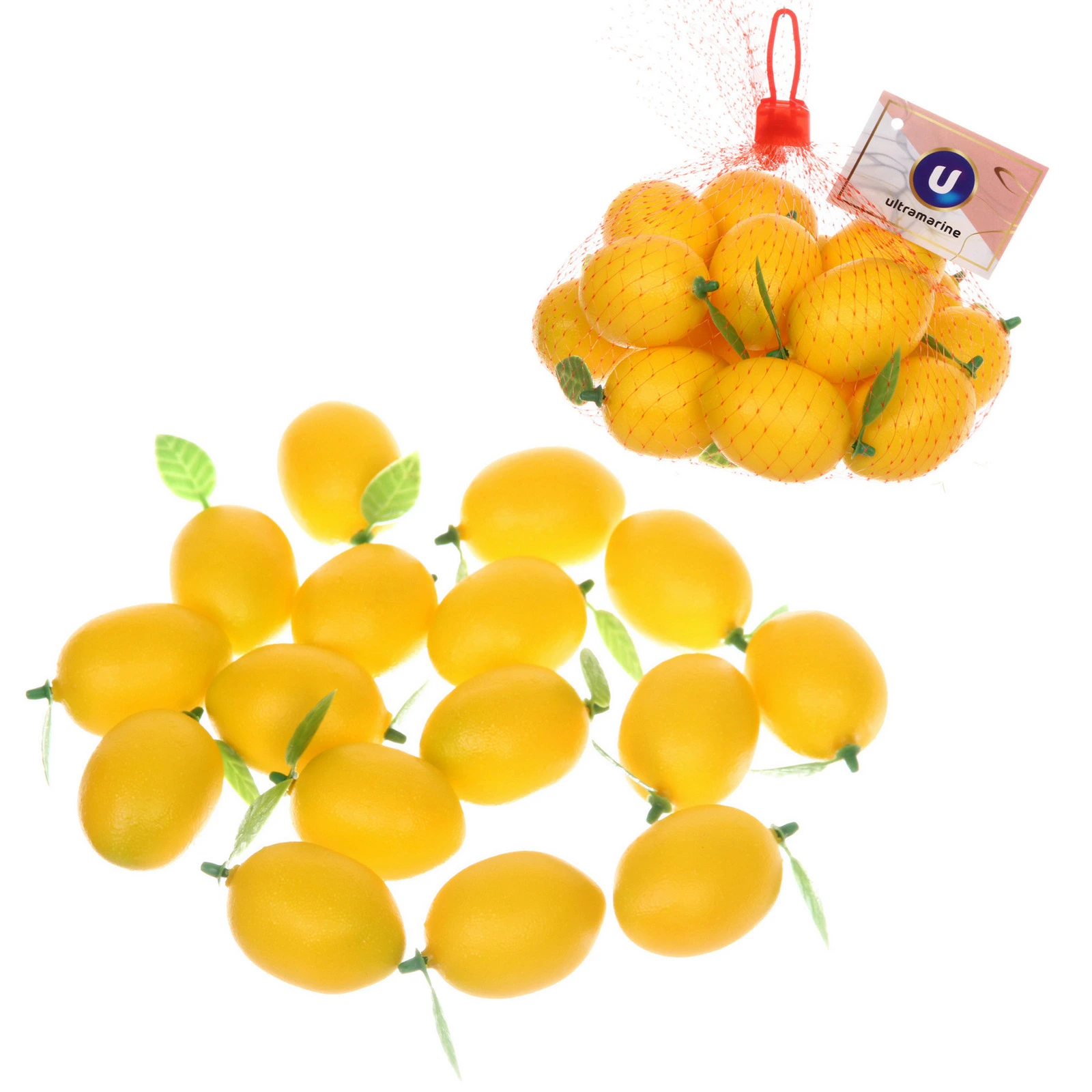 Муляж лимона декоративный, 16 штук в сетке, пластик, жёлтый с зелёным листиком, для украшения интерьера
