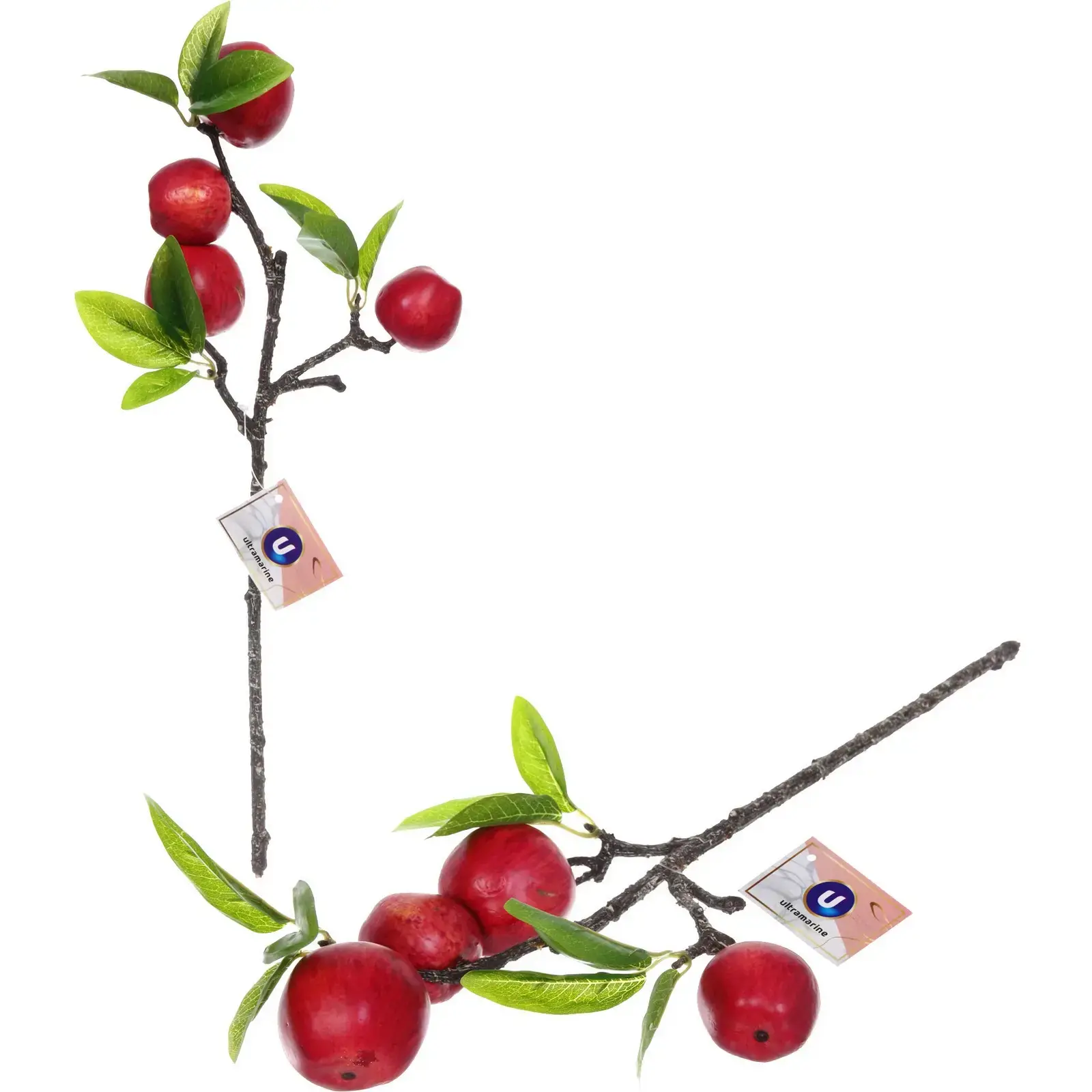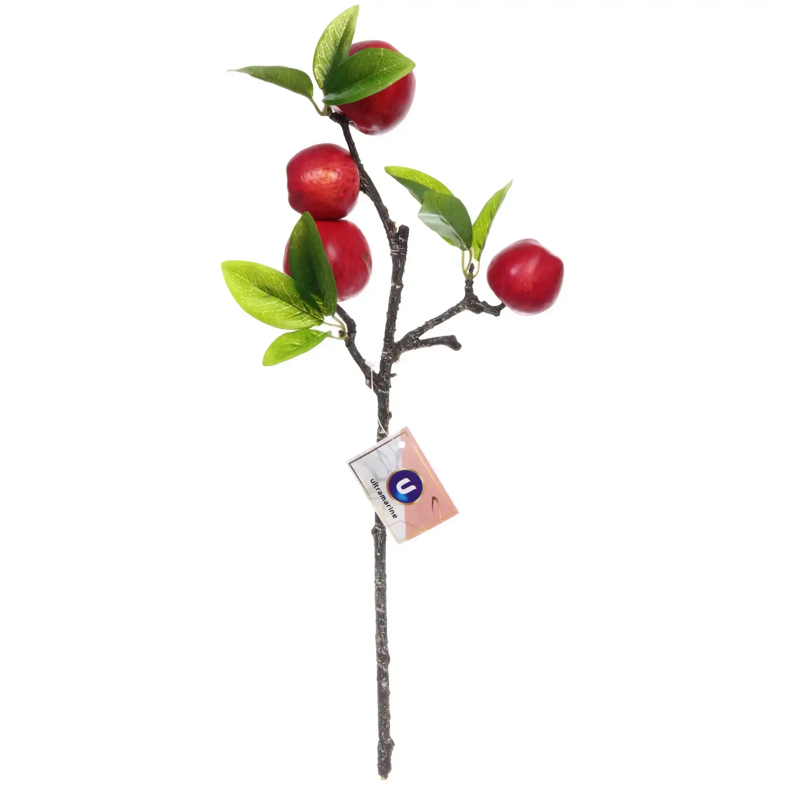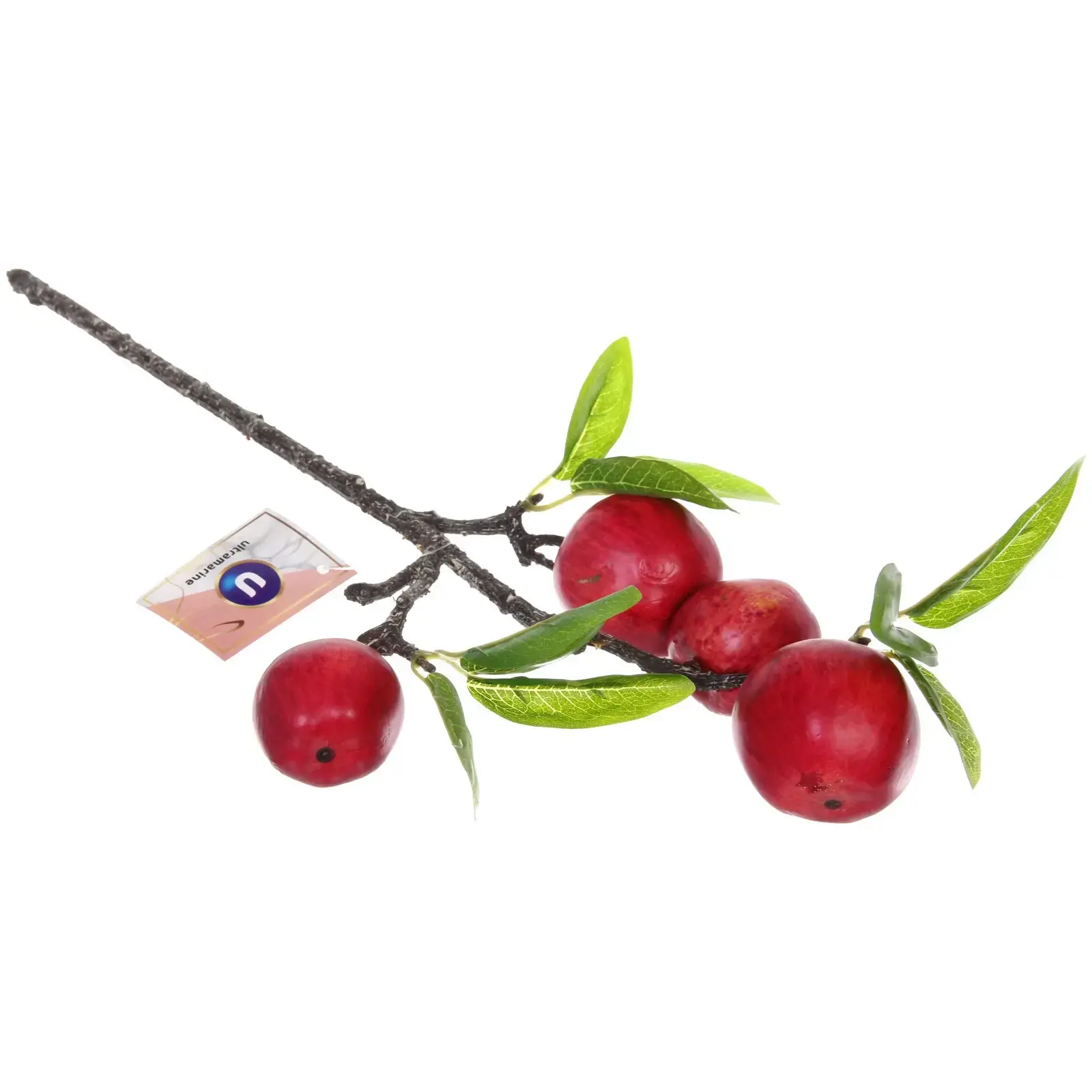 Ветка выполнена из материала, имитирующего древесину, и украшена яркими красными яблоками и зелеными листьями. Размеры муляжа составляют 40 см в длину, что делает его компактным и удобным для размещения в любом пространстве. Яркие цвета и детализированная текстура делают этот муляж идеальным выбором для создания уютной атмосферы.