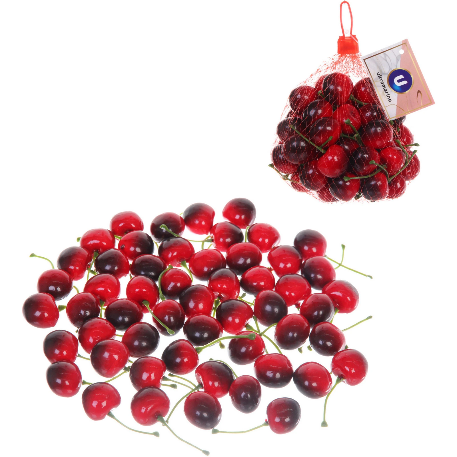 Муляжи изготовлены из качественного пластика, имеют гладкую глянцевую поверхность и прочное крепление плодоножки. Цвет ягод в ассортименте — ярко-красный или с тёмно-бордовым градиентом. Отгружается один сетчатый пакет, содержащий 50 муляжей. Товар предназначен исключительно для декоративных целей.