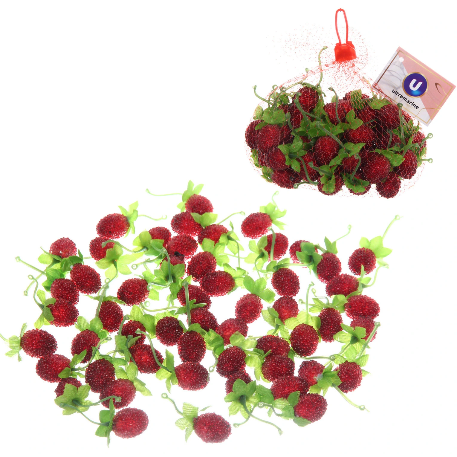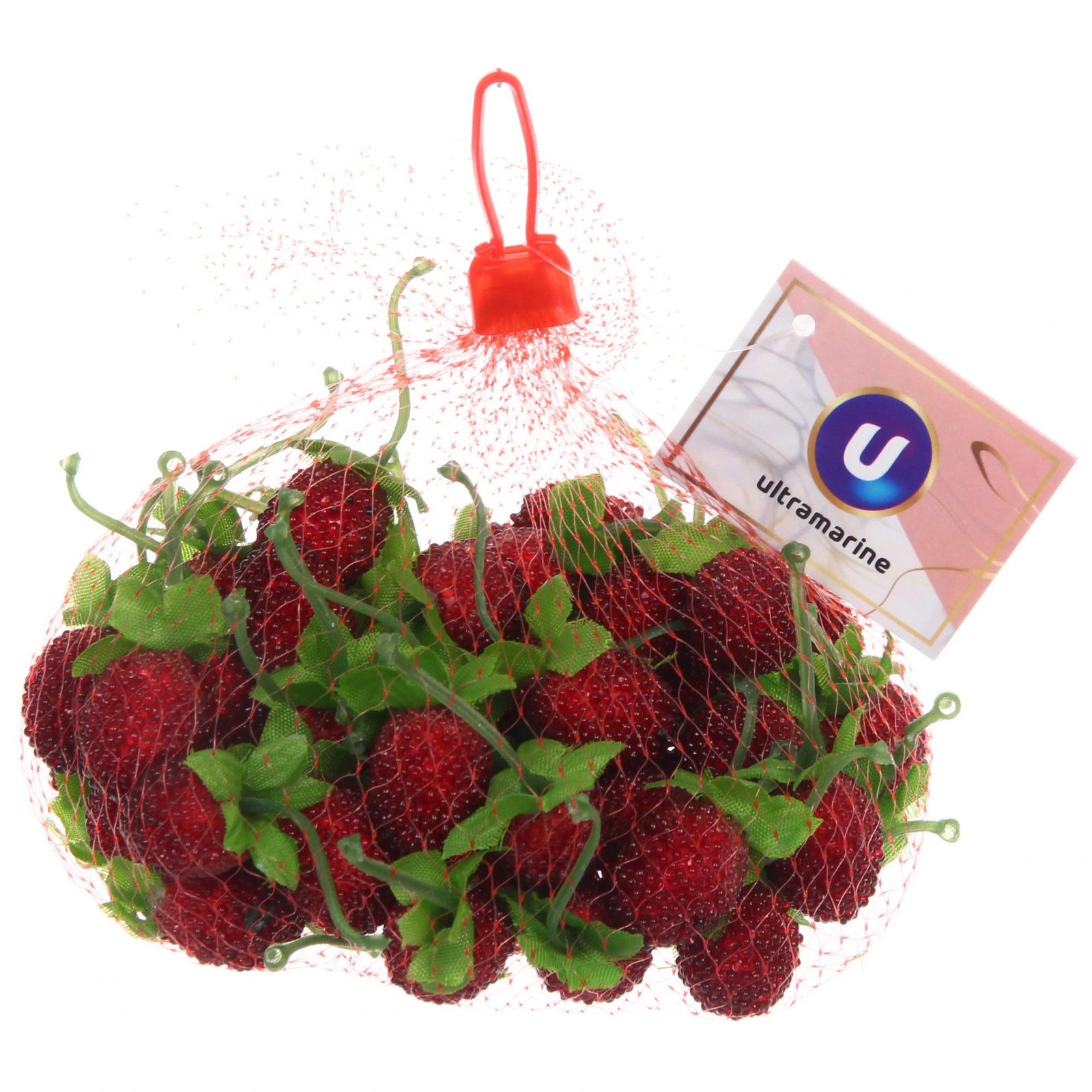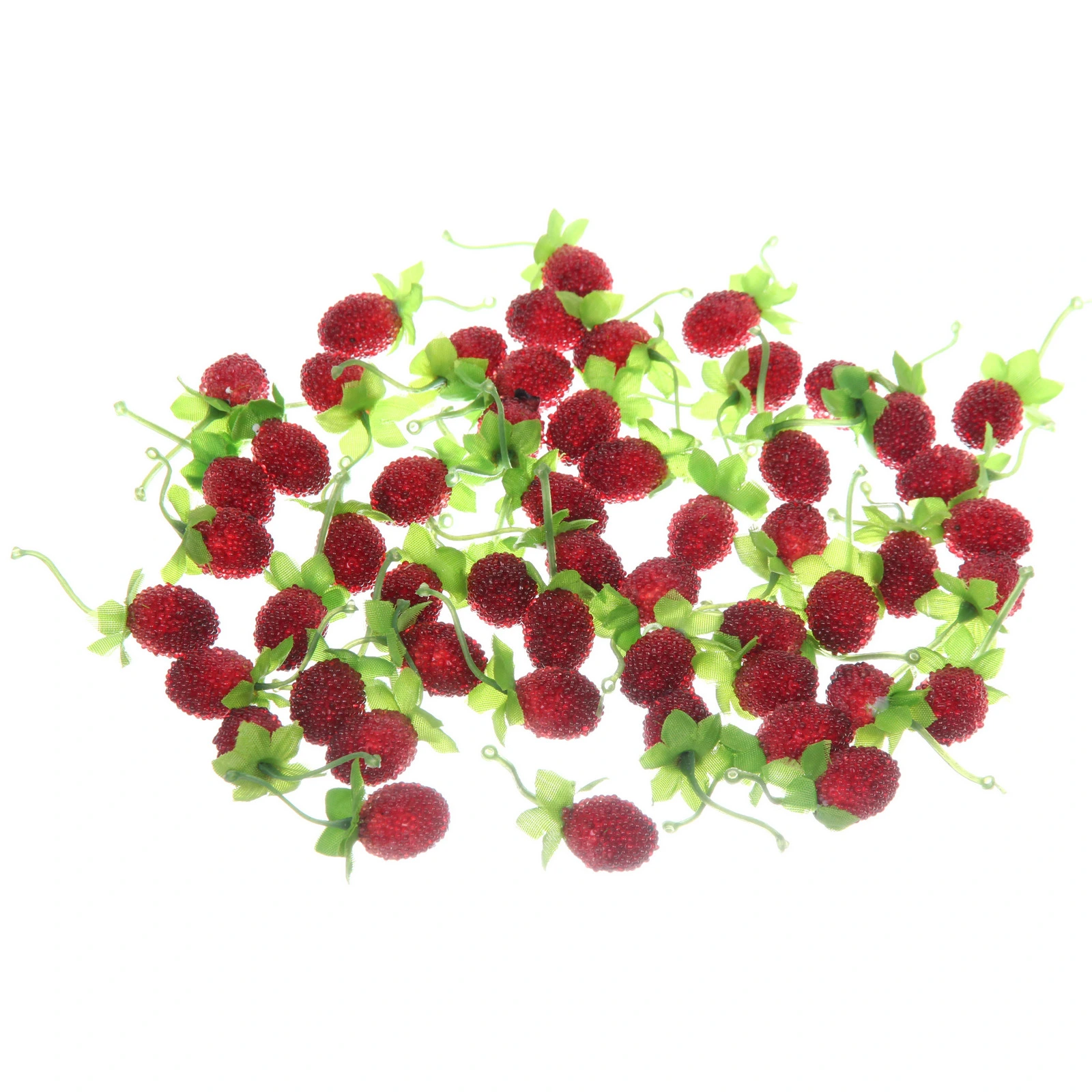 Декоративные ягоды красные с листьями, 50 шт в сетке, муляж для украшения интерьера и творчества
