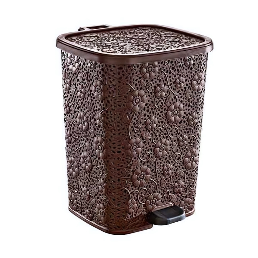 Размеры ведра не указаны, но оно имеет стандартные пропорции, что позволяет удобно размещать его в любом уголке вашего дома. Коричневый цвет и узор, имитирующий цветы и вьющиеся линии, делают его не только функциональным, но и стильным элементом интерьера. Приобретая это ведро, вы получаете не просто контейнер для мусора, а стильный аксессуар, который подчеркнет ваш вкус.