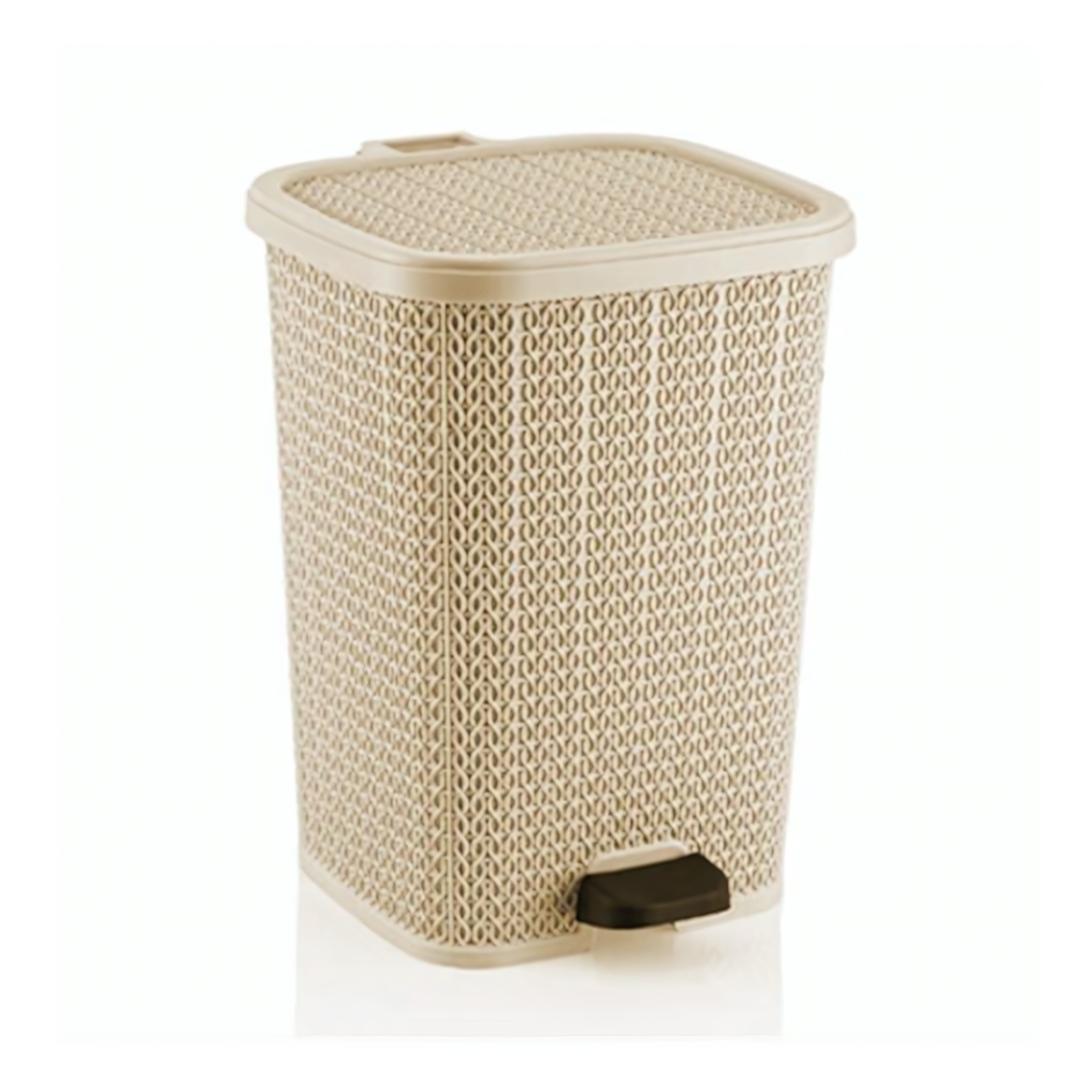 Мусорное ведро с педалью 12л, "Вязаный узор", бежевый, пластик
