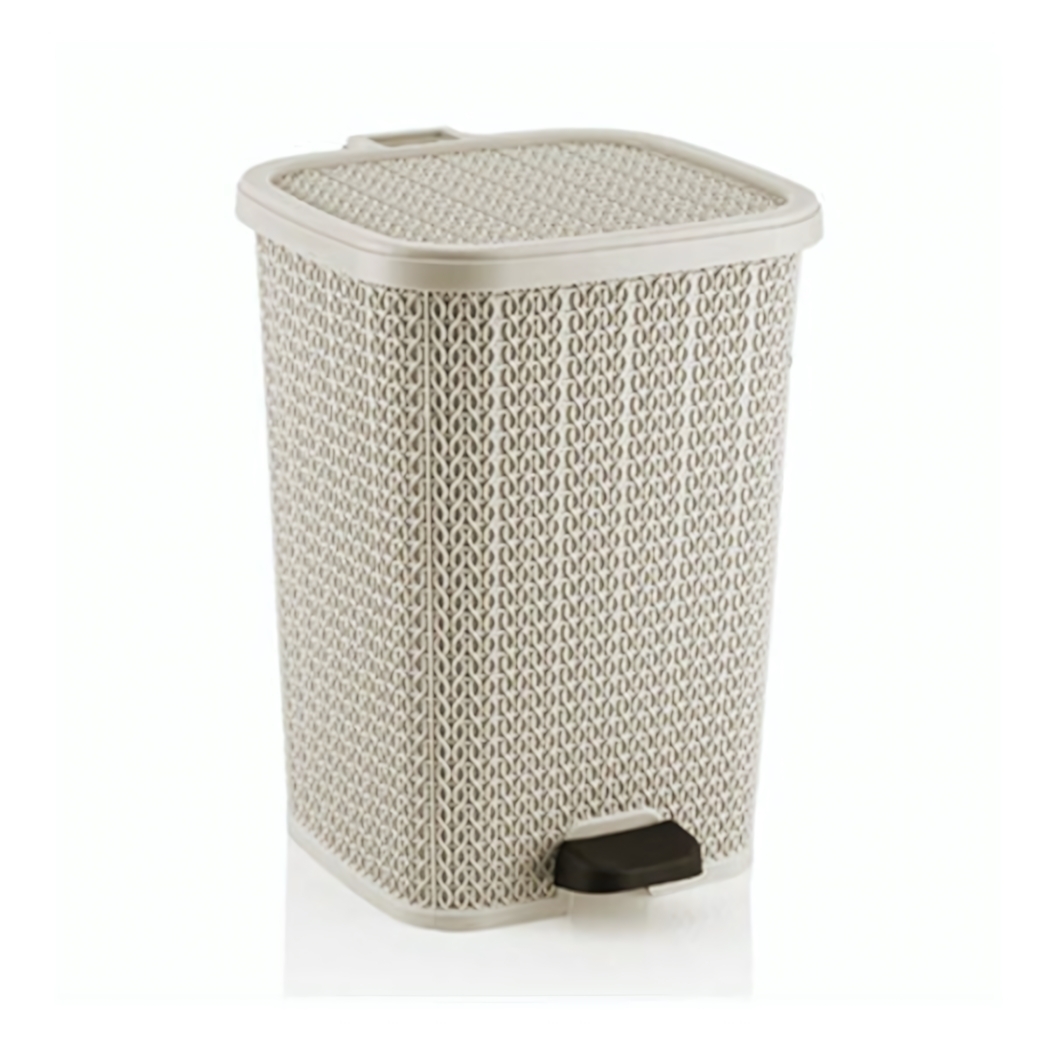 Мусорное ведро с педалью 12л, "Вязаный узор", кремовый, пластик, стильный дизайн