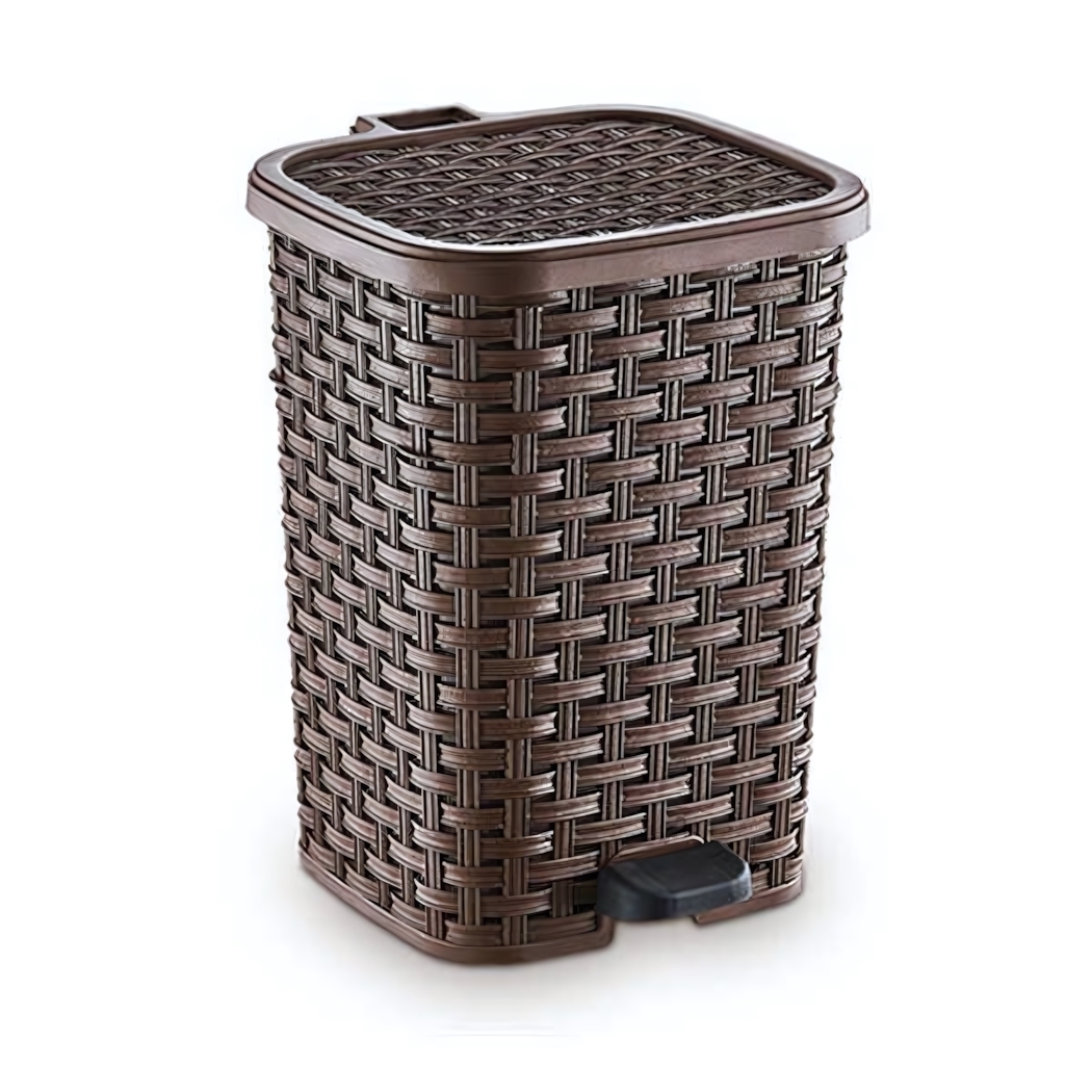 Мусорное ведро с педалью объемом 26 литров — это идеальное решение для поддержания чистоты и порядка в вашем доме. Его стильный коричневый цвет и текстурированная поверхность в виде плетения делают его не только функциональным, но и эстетически привлекательным элементом интерьера. Вы забудете о неприятных запахах и грязи, так как крышка плотно закрывается, обеспечивая гигиеничное использование.