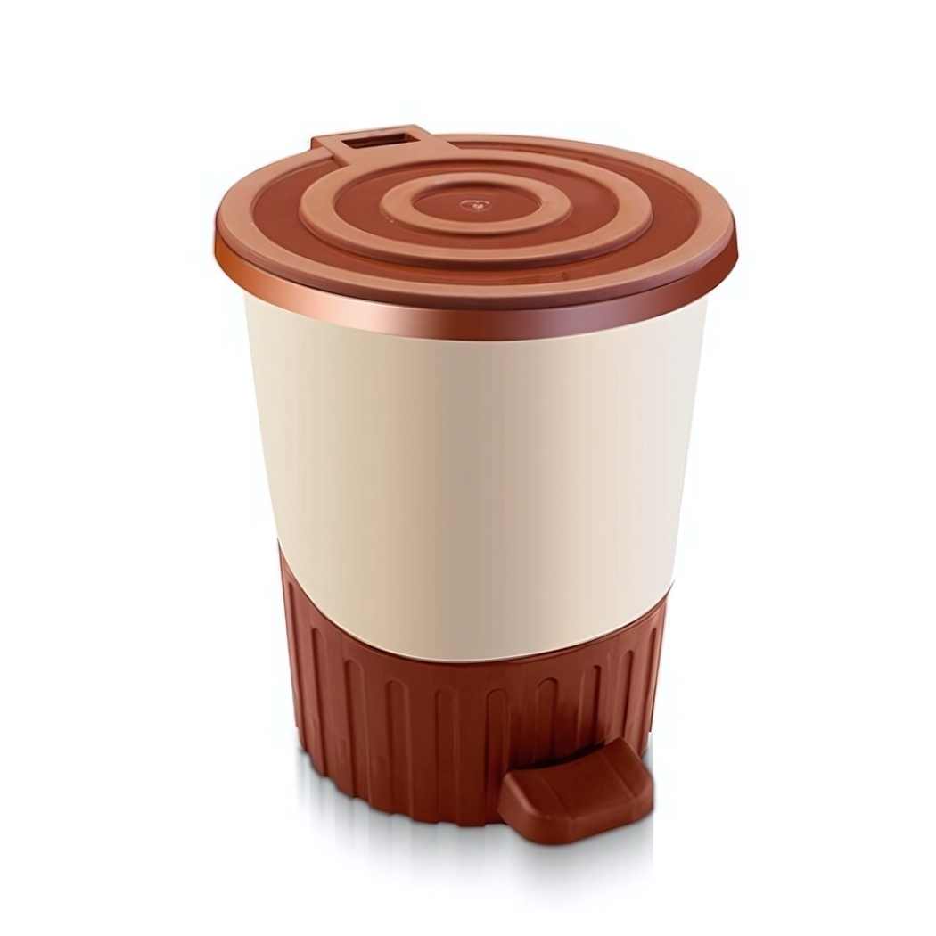 Это мусорное ведро станет незаменимым помощником в вашем доме, обеспечивая комфорт и удобство в использовании. Благодаря педали, вам не нужно прикасаться к ведру руками, что делает процесс утилизации отходов более гигиеничным и простым. Дизайн ведра выполнен в стильных бежевом и коричневом цветах, что позволит ему гармонично вписаться в любой интерьер.
