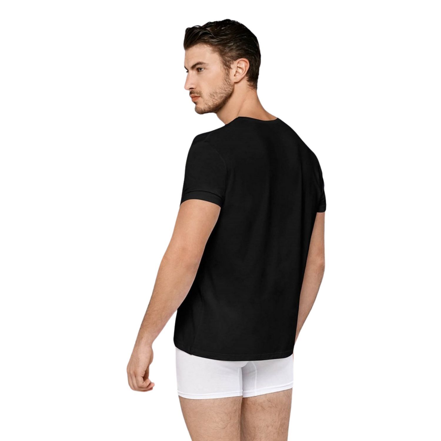 Футболка выполнена из 90% модала и 10% эластана, что обеспечивает ей эластичность и прочность. Размер M подходит для большинства мужчин, а черный цвет делает ее универсальной для сочетания с любыми другими элементами гардероба. Не упустите возможность добавить этот качественный и стильный предмет одежды в свой арсенал!