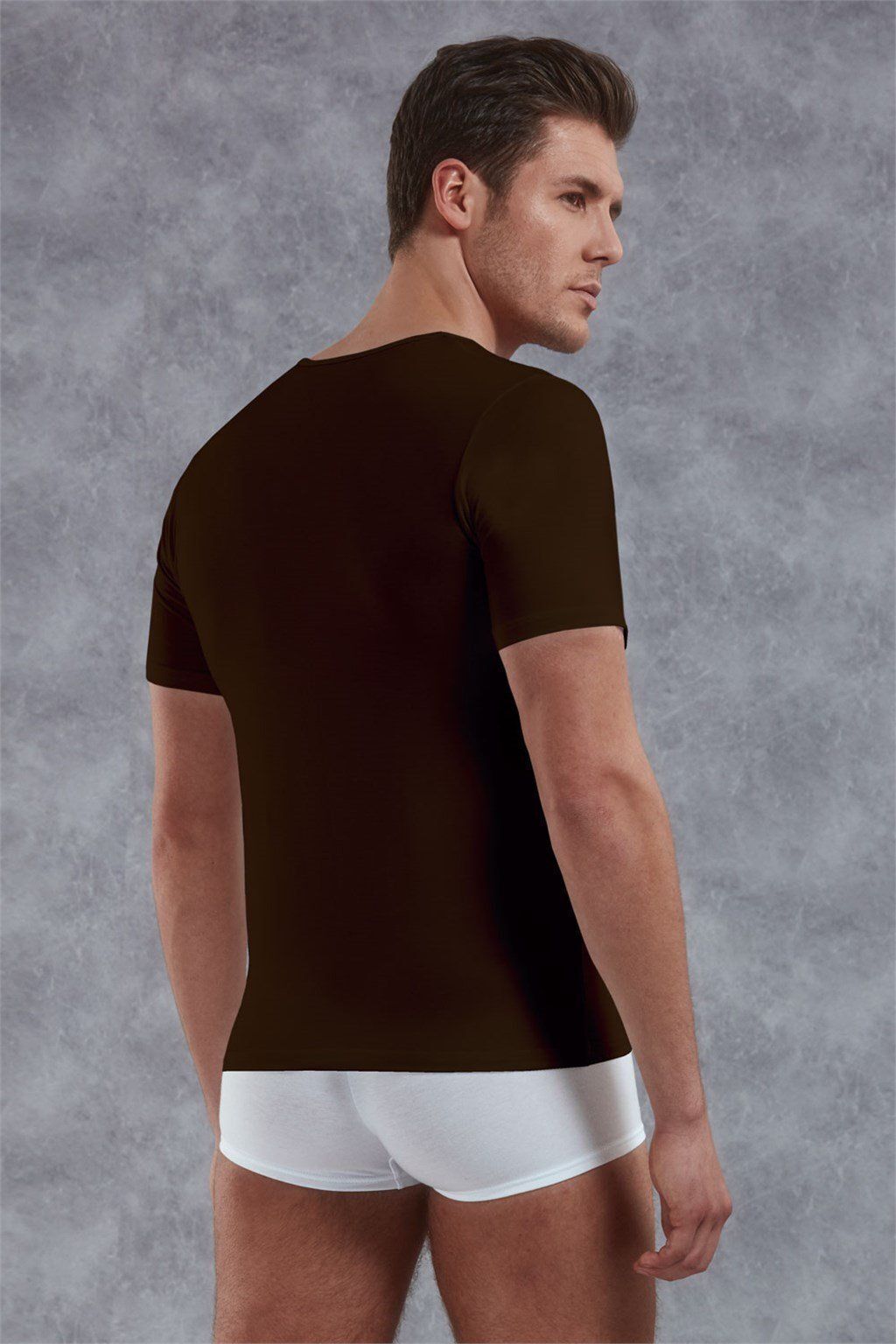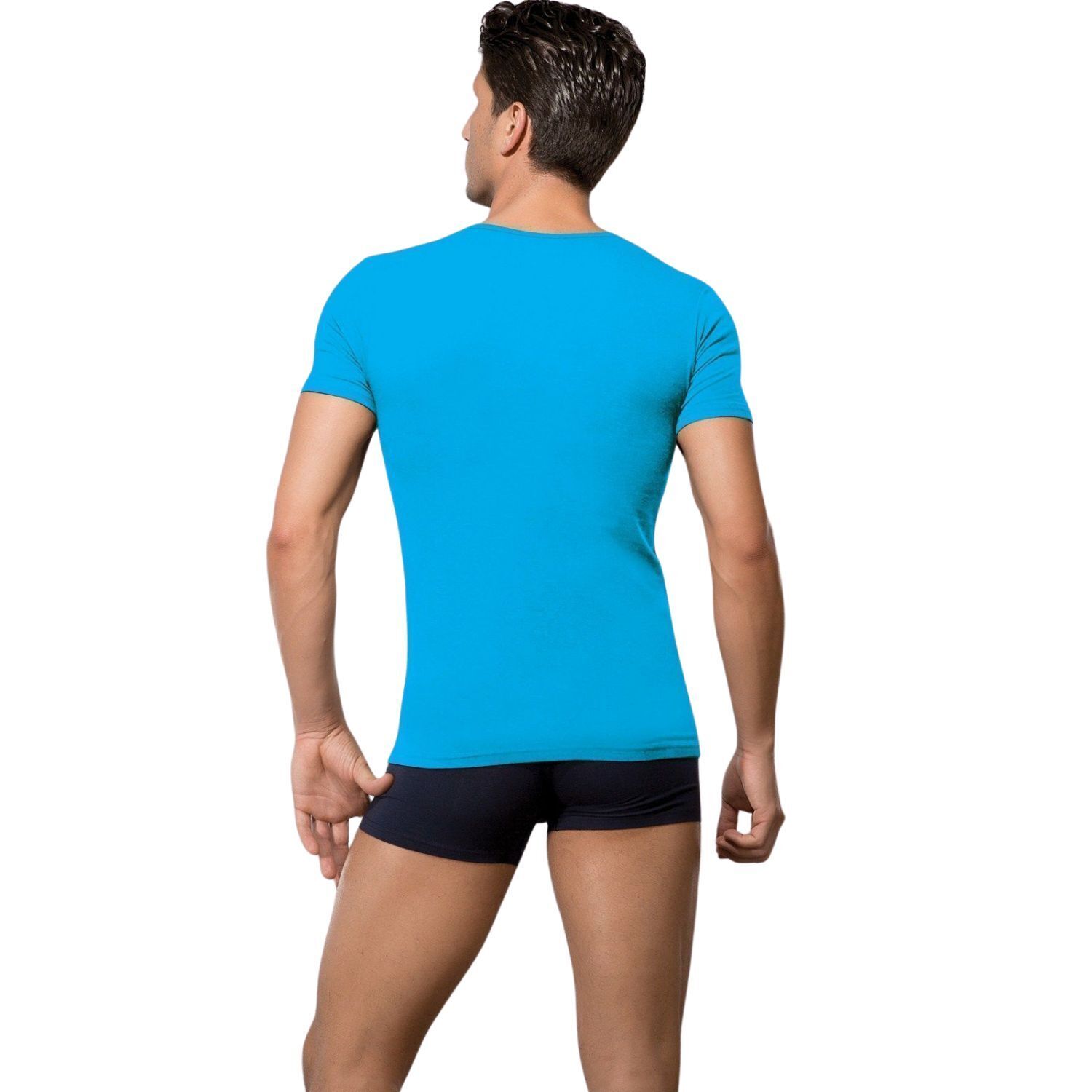 Эта футболка прекрасно подходит для ношения как в повседневной жизни, так и под деловой костюм. Широкий V-образный вырез горловины позволяет носить ее под рубашкой, не беспокоясь о том, что ворот будет виден из-под лацканов пиджака. Размер M идеально подходит для мужчин, которые предпочитают облегающий крой, подчеркивающий фигуру.