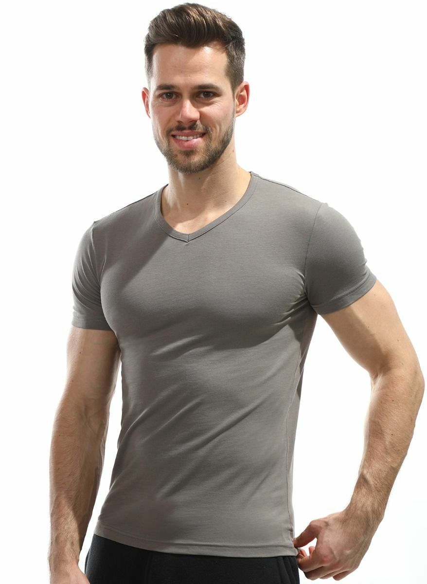 Футболка мужская 'Classic' с V-вырезом, размер S, серый меланж, 94% хлопок
