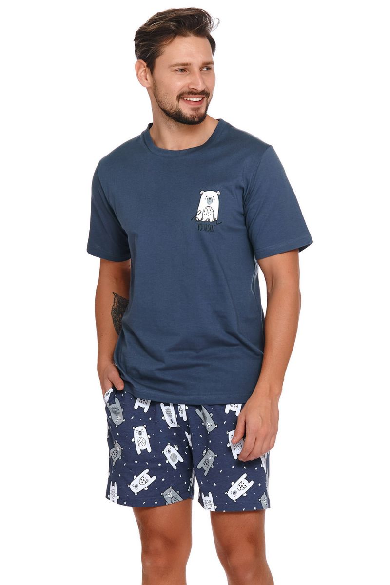Мужская пижама Doctor Nap создана для тех, кто ценит мягкость ткани и свободу движений дома. Натуральный хлопок приятно ощущается на коже, помогает телу дышать и дарит ощущение уюта после насыщенного дня. Спокойный синий цвет и аккуратный принт с мишкой добавляют образу расслабленности и легкого настроения.