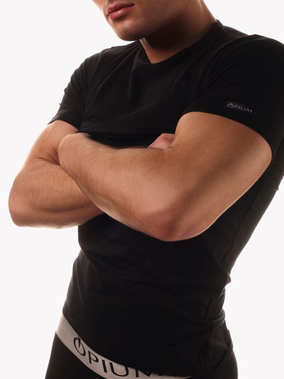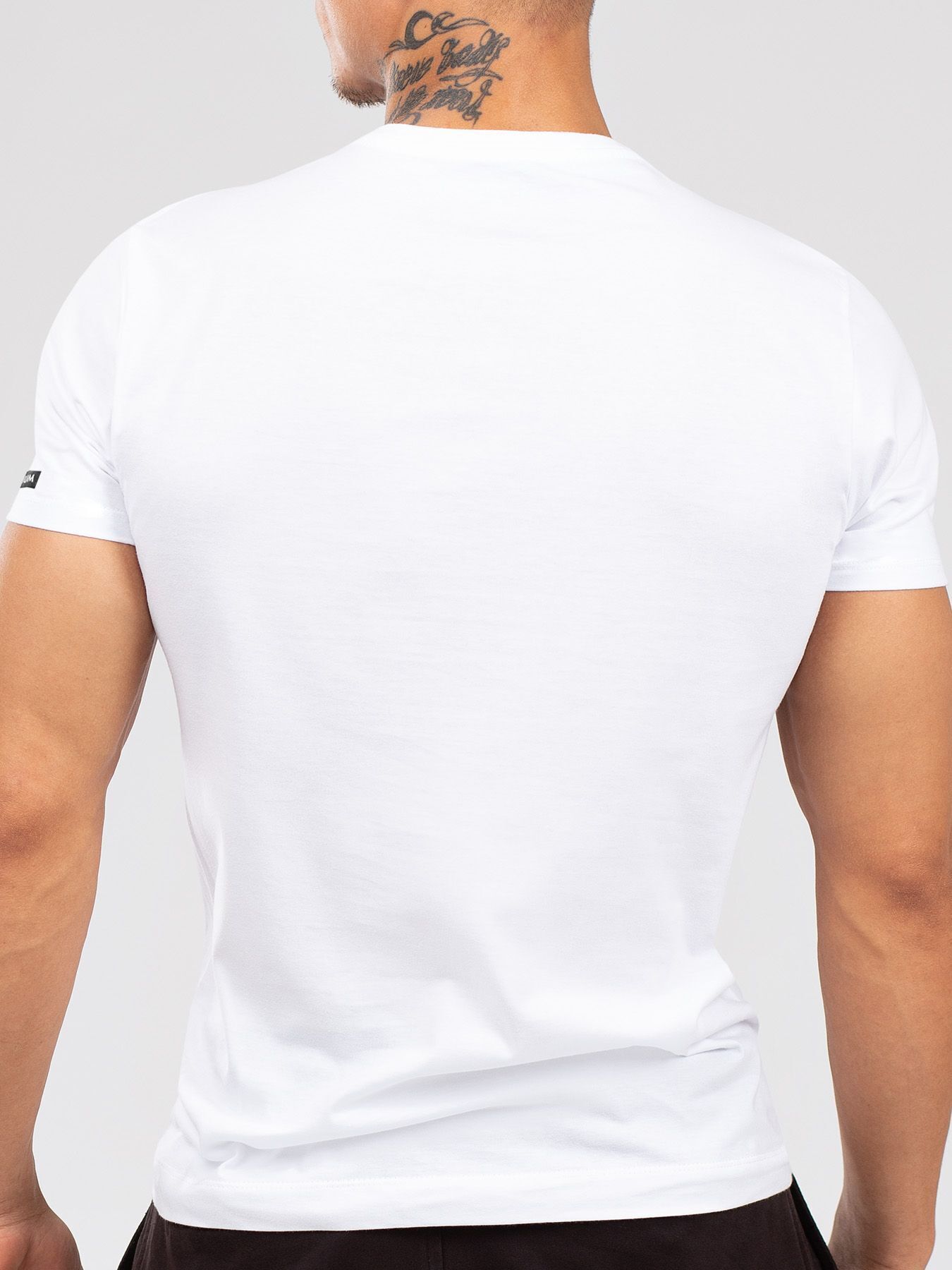 Размер: XXXL. Цвет: белый. Материал: 95% хлопок, 5% эластан. Футболка имеет короткие рукава и округлый вырез, а также стильный шеврон с логотипом OPIUM на рукаве, что добавляет ей уникальности. Эта модель станет отличным дополнением к вашему гардеробу и подчеркнет ваш индивидуальный стиль.