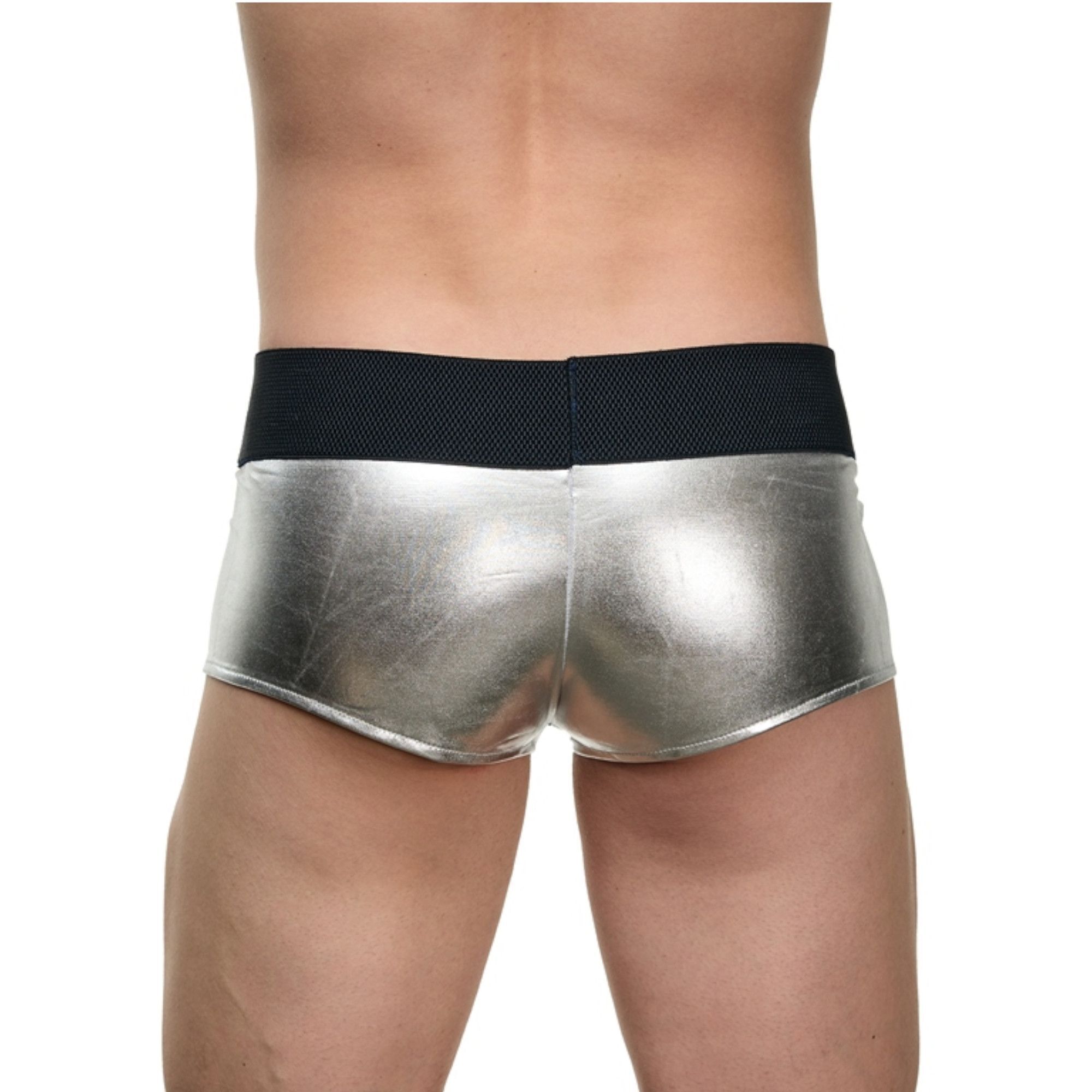 Мужские блестящие трусы-боксеры La Blinque с кармашком, серебристый с черным, размер L-XL, полиамид и полиуретан