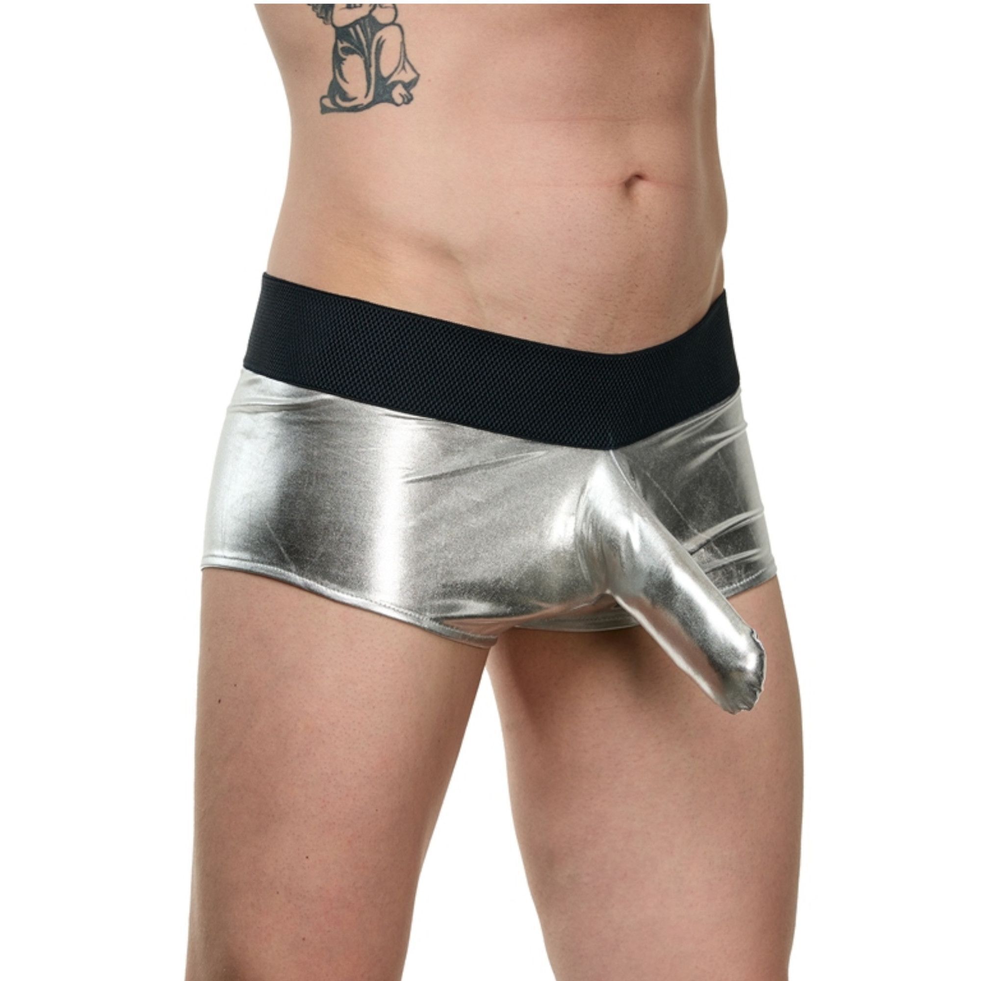 Трусы-боксеры мужские блестящие с кармашком, размер S-M, серебристый/черный, полиамид/полиуретан