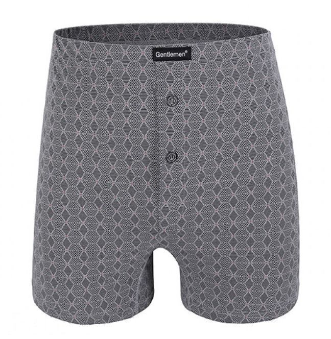 Мужские хлопковые трусы-боксеры свободного кроя – это идеальный выбор для тех, кто ценит комфорт и качество. Изготовленные из 100% хлопка, они обеспечивают отличную воздухопроницаемость и мягкость, что делает их идеальными для повседневного ношения. Серый цвет с узором в ромбы добавляет стильный акцент, а высокая талия обеспечивает надежную посадку.