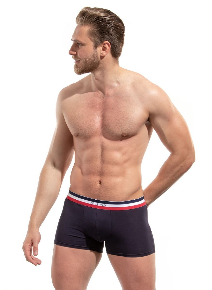 Эти трусы-боксеры имеют классическую форму с закруглёнными краями, что делает их удобными для ношения под любой одеждой. Эластичный пояс с трёхцветной отделкой не только стильно выглядит, но и обеспечивает надежную фиксацию, не сковывая движения. Они идеально подойдут для мужчин, ценящих комфорт и качество в нижнем белье.