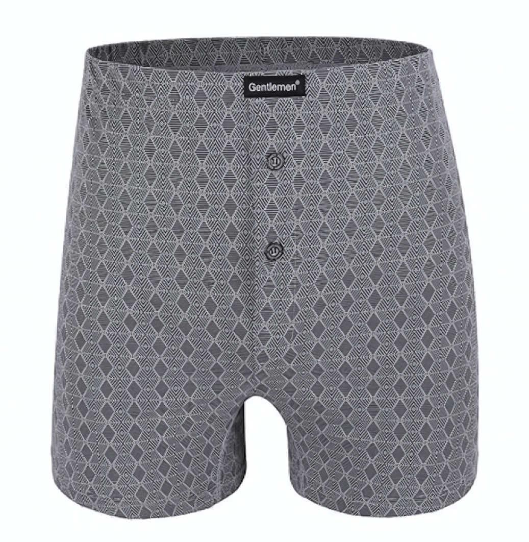Мужские хлопковые трусы-боксеры свободного кроя – это идеальный выбор для тех, кто ценит комфорт и качество. Изготовленные из 100% хлопка, они обеспечивают отличную воздухопроницаемость и мягкость на ощупь, что делает их идеальными для повседневного ношения. Серый цвет с узором в виде ромбов добавляет стильный акцент, а эластичный пояс с логотипом 'Gentlemen' гарантирует надежную посадку.