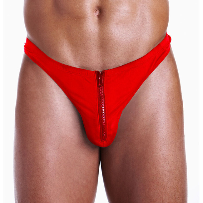 Мужские стринги "HUSTLER" на молнии, нейлон, красные, SM (46-48), облегающий крой