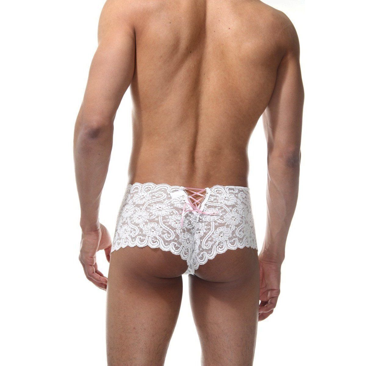 Трусы мужские кружевные с шнуровкой, размер L-XL, белые, полиамид/эластан
