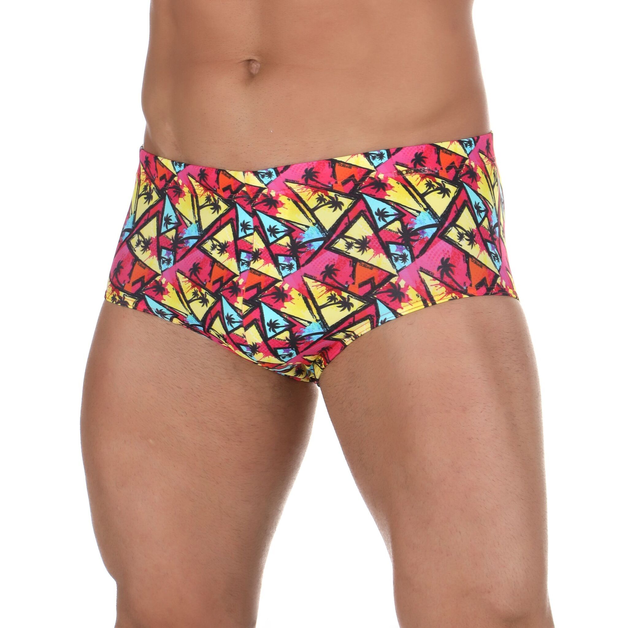Почувствуйте свободу движений и уверенность в воде с эргономичными плавками Dorenase. Яркий геометрический принт с тропическими мотивами подчеркнет вашу индивидуальность на пляже или у бассейна.
