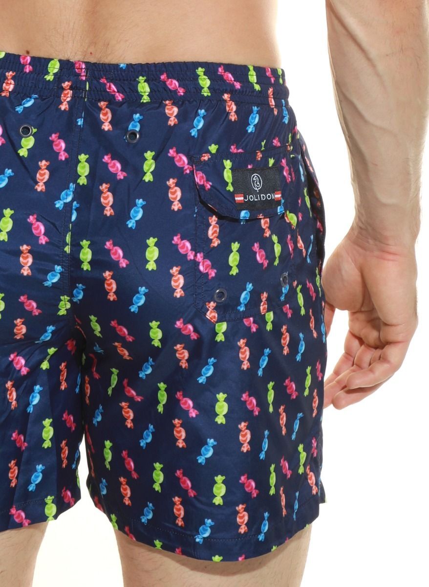 Шорты выполнены из 100% полиэстера, что гарантирует долговечность и простоту в уходе. Темно-синий цвет с яркими акцентами в виде конфет делает их универсальными для сочетания с различной пляжной одеждой. Не упустите возможность добавить этот стильный элемент в ваш гардероб для летнего отдыха!