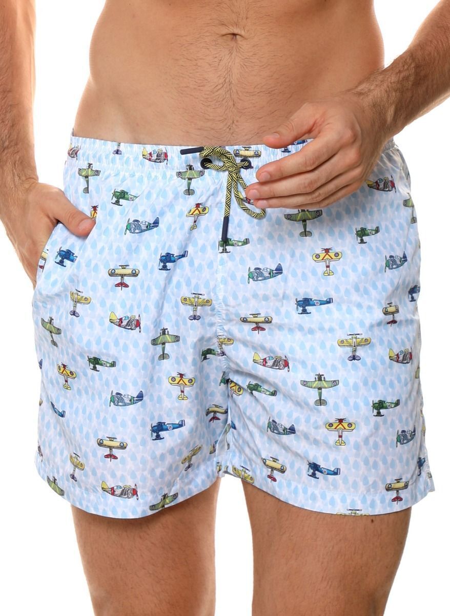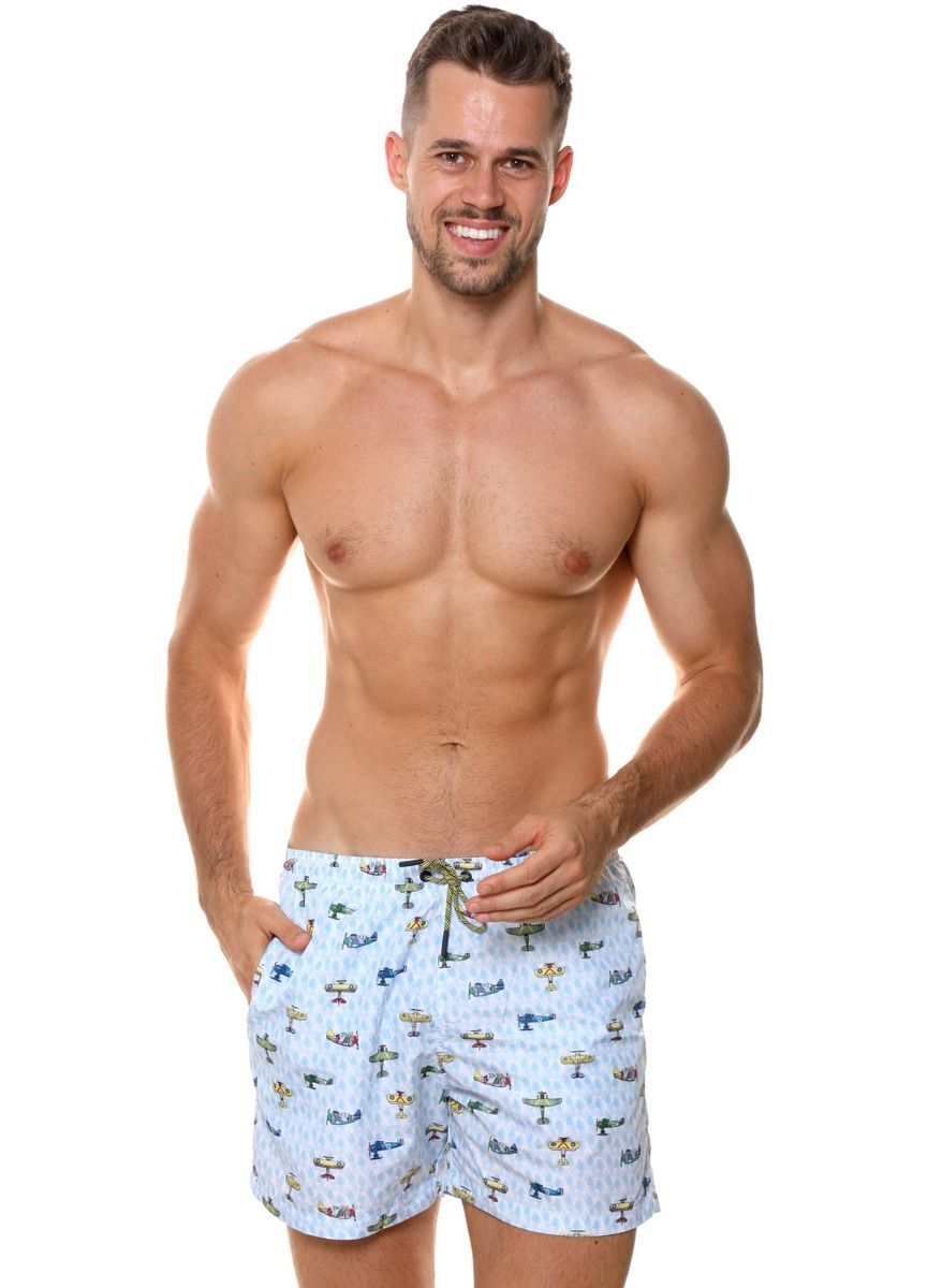 Комфортные мужские пляжные шорты с ярким принтом самолетов