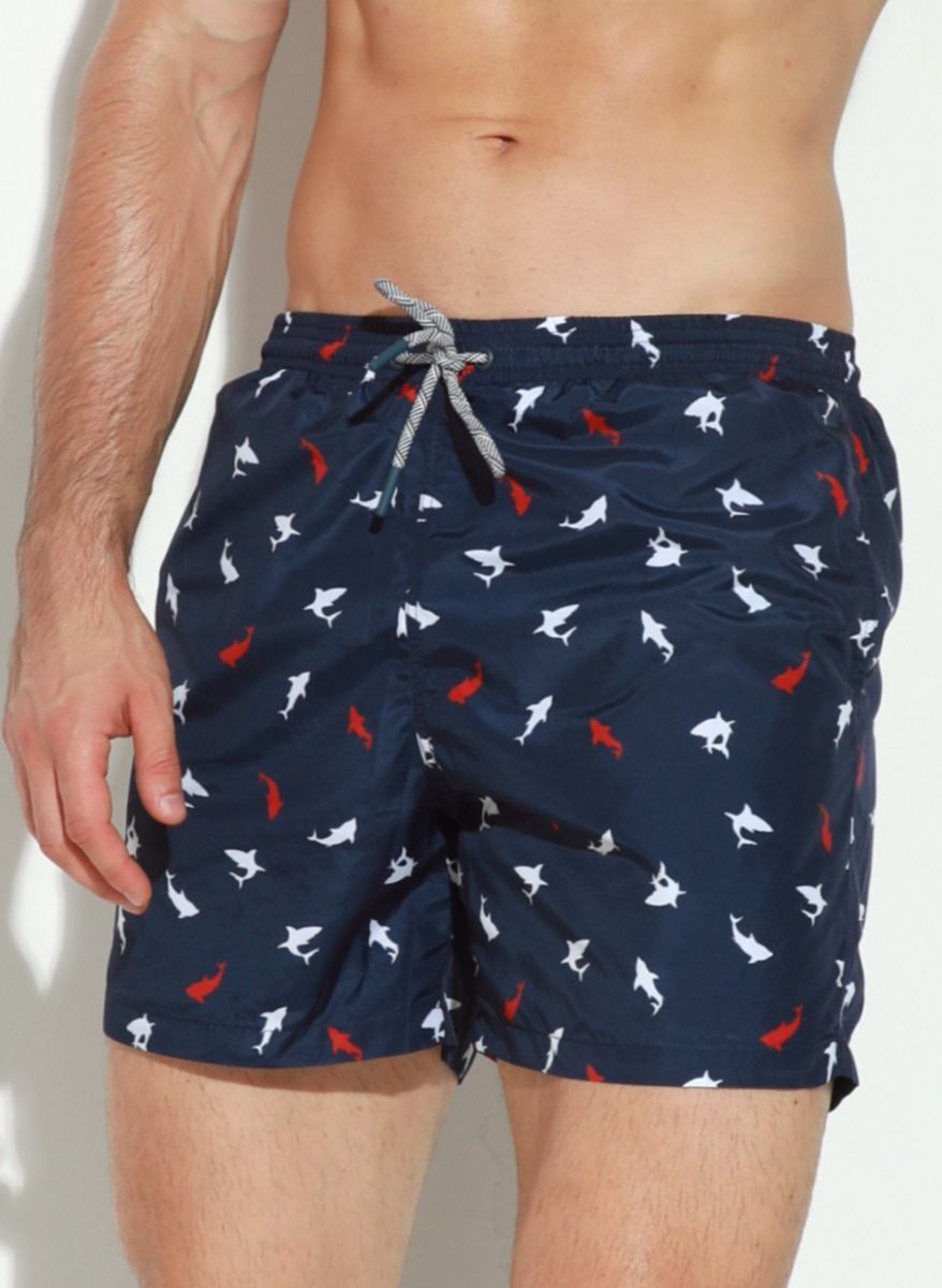 Шорты пляжные мужские Jolidon, размер XL, темно-синие с принтом акул, быстросохнущие