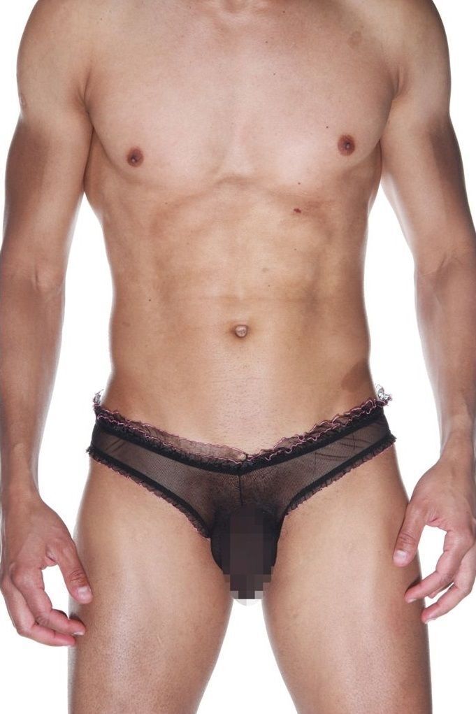 Трусы-слипы мужские полупрозрачные, черный, S-M, с рюшами и сборкой