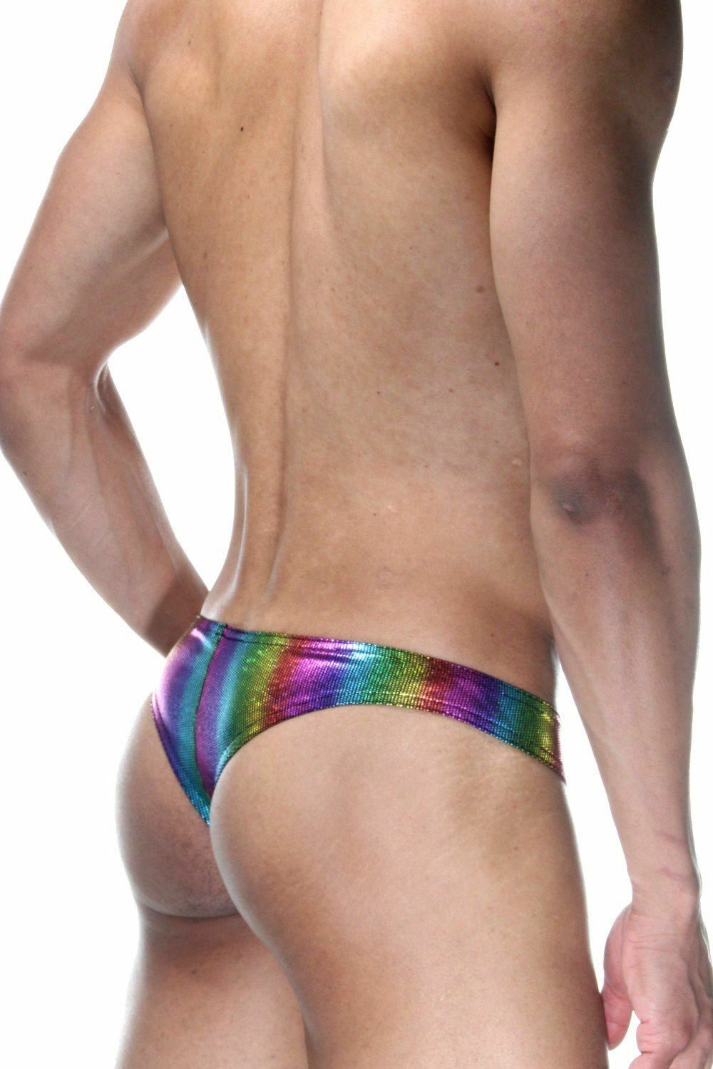 Трусы-бразилиана мужские L, радужные с блеском, комфортный эластичный материал
