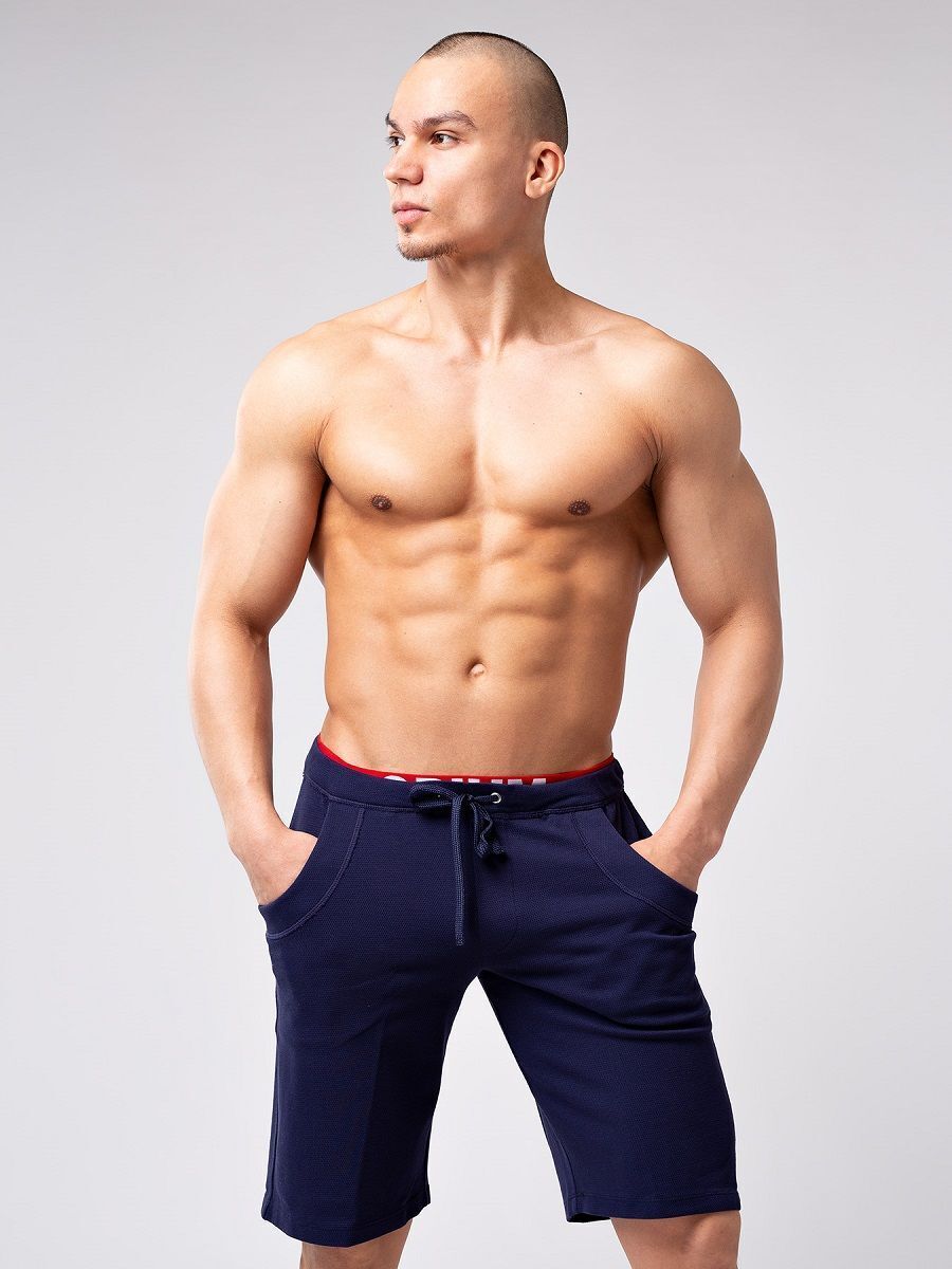 Мужские спортивные шорты с регулируемым поясом, 100% хлопок, темно-синий/красный, размер XXXL