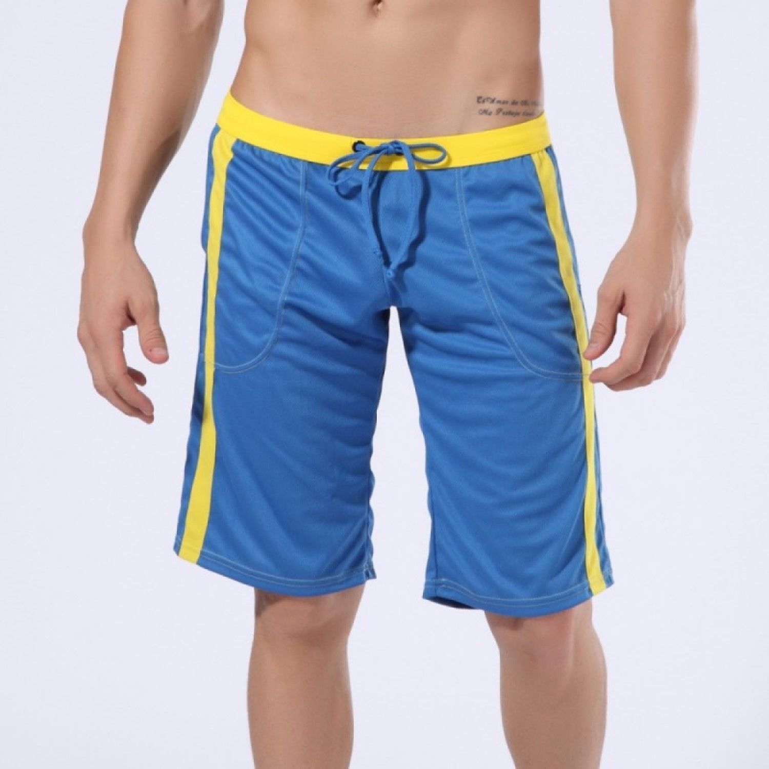 Спортивные шорты с лампасами, XL, синий/желтый, регулируемый пояс, карманы, полиэстер/спандекс